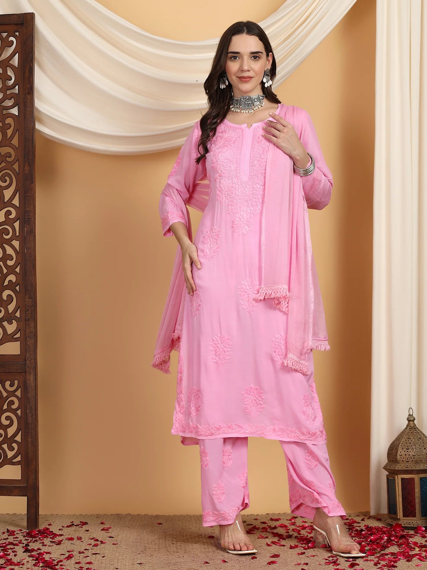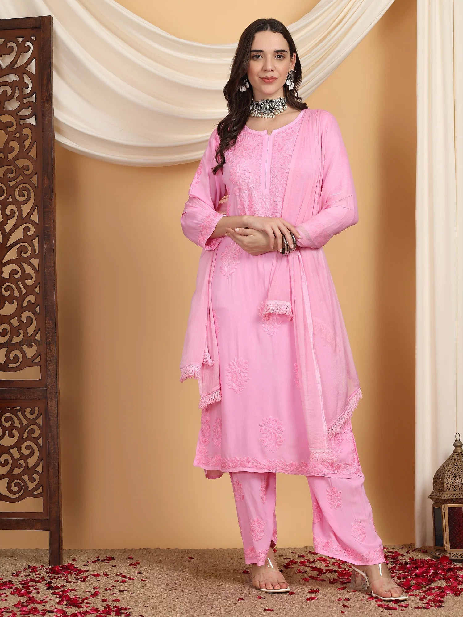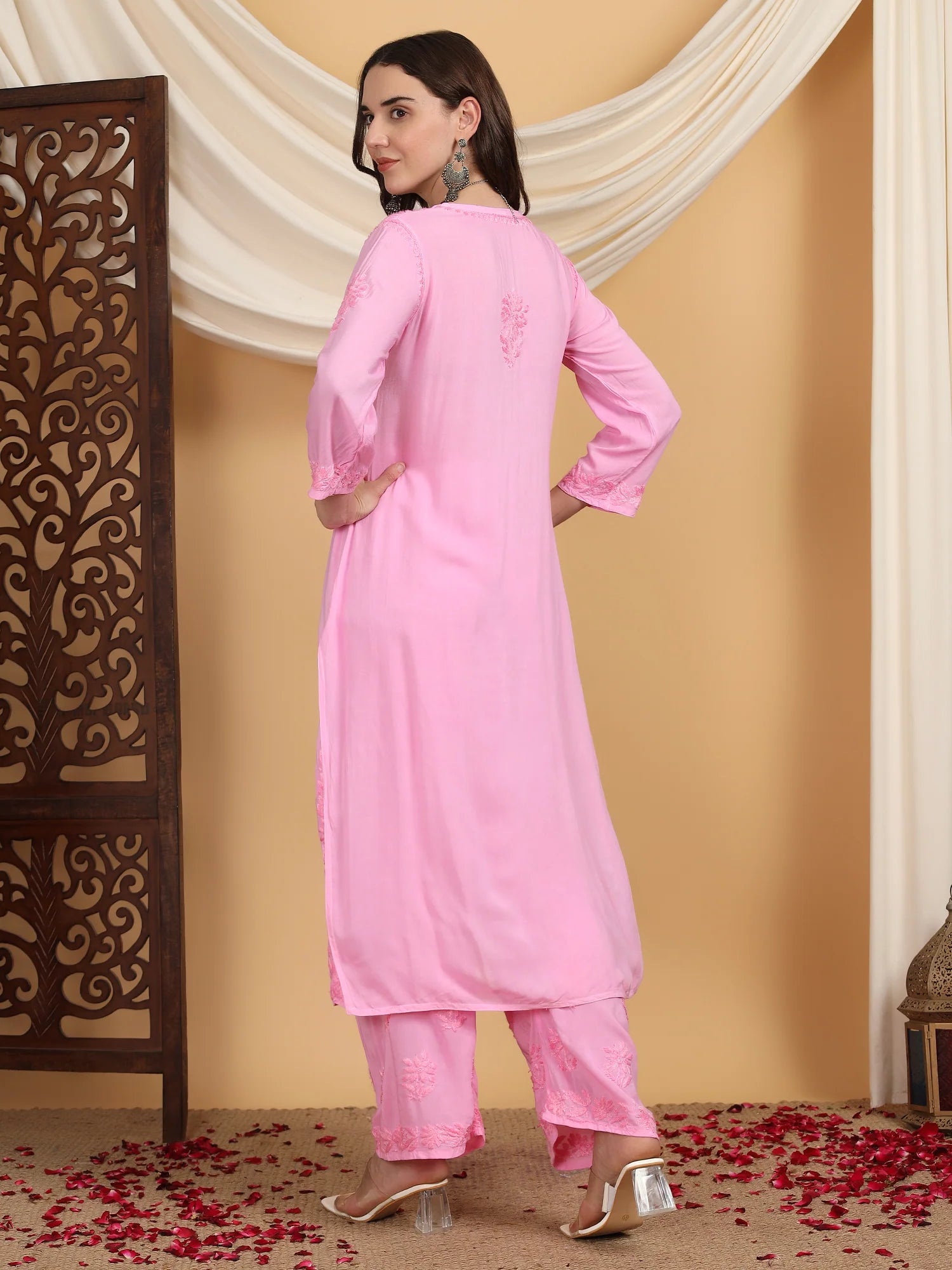 Farha Chikankari Premium Modal Co-ord Set (Baby Pink)