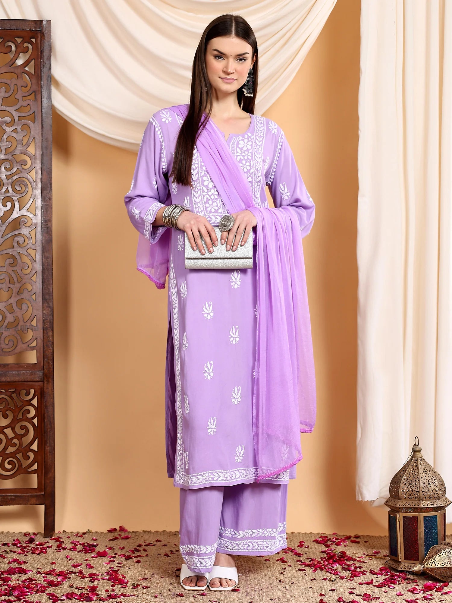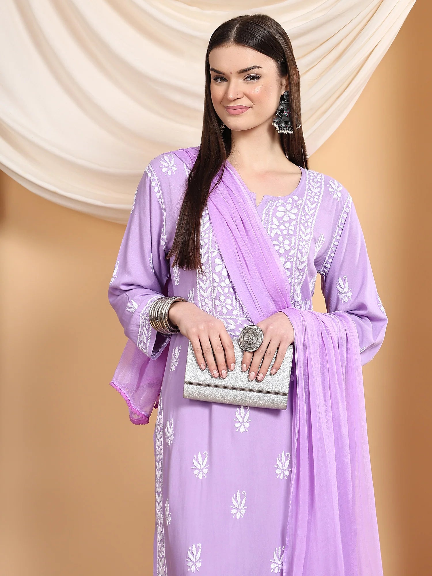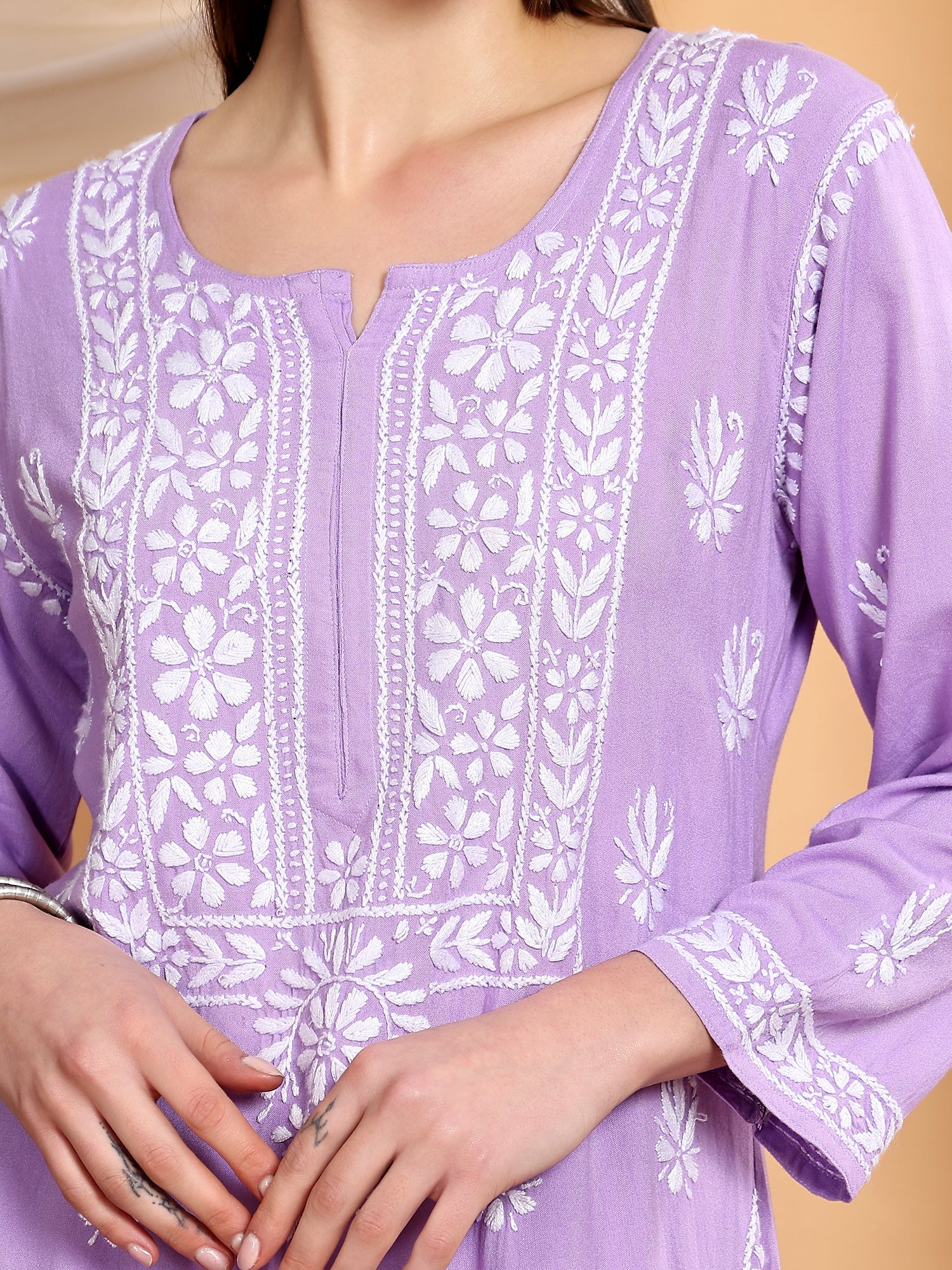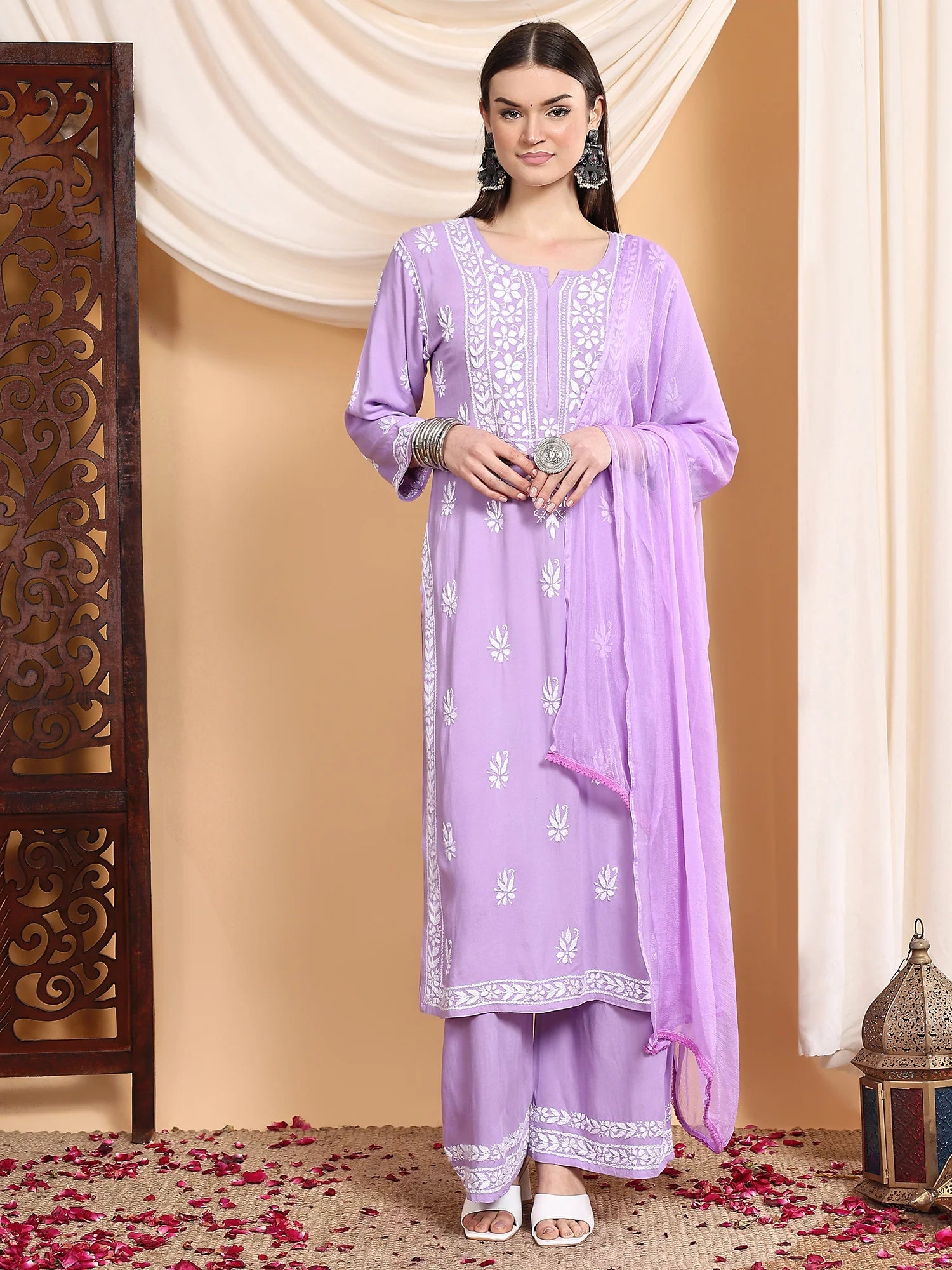 Haya Chikankari Rayon Co-ord Set (Lilac)