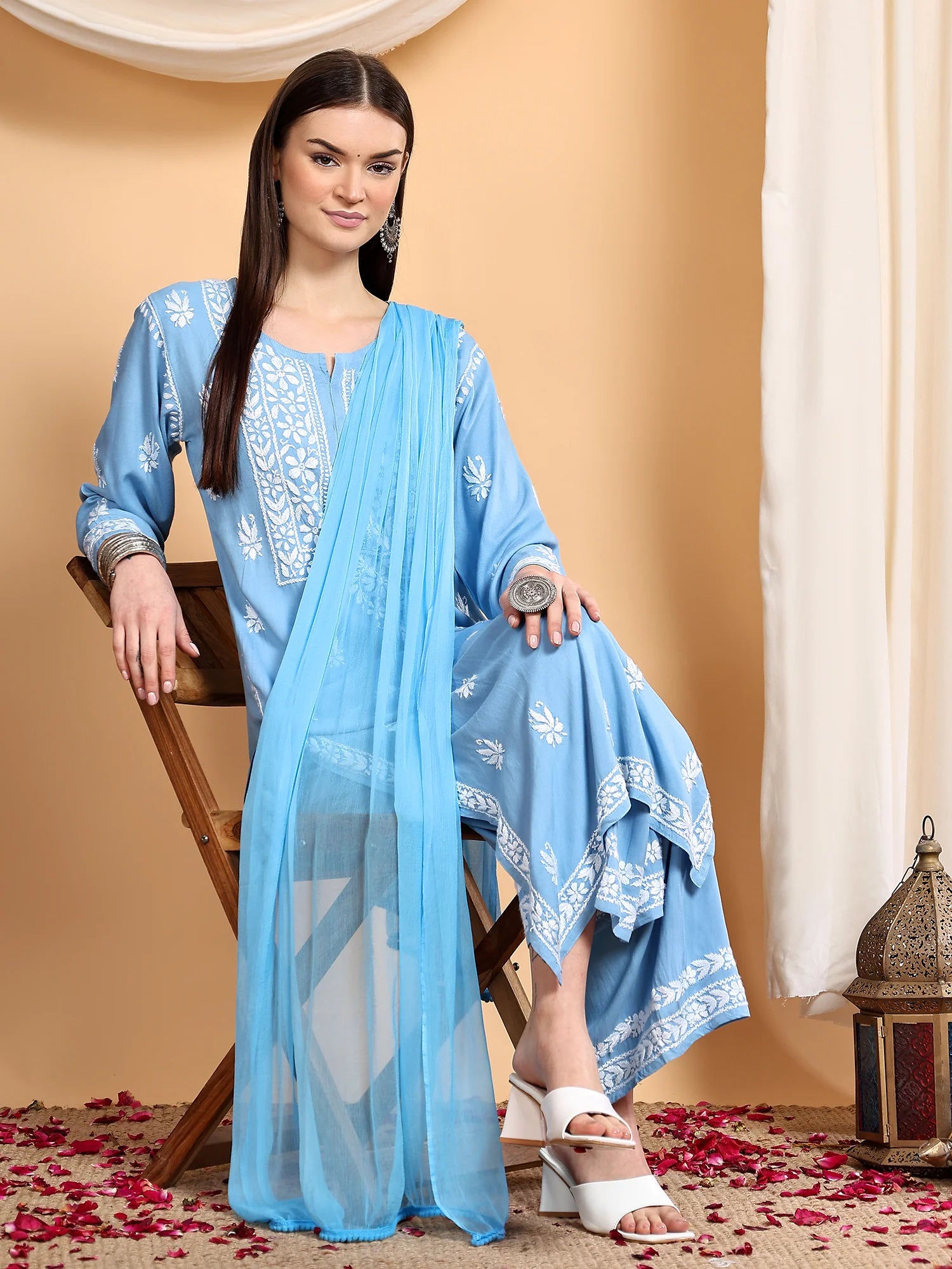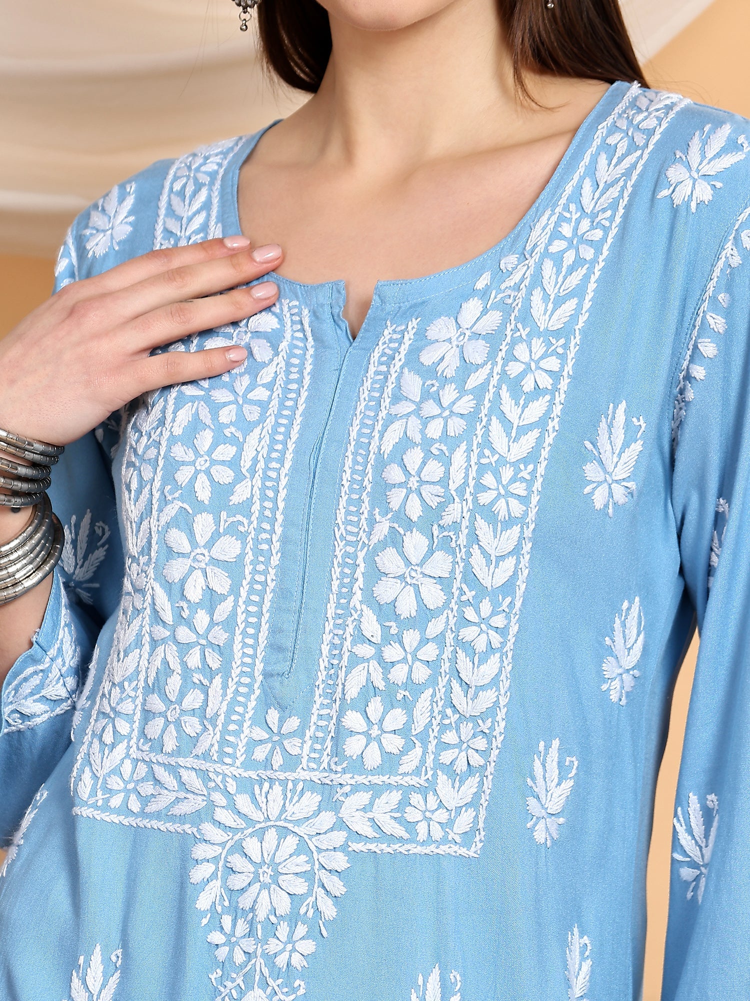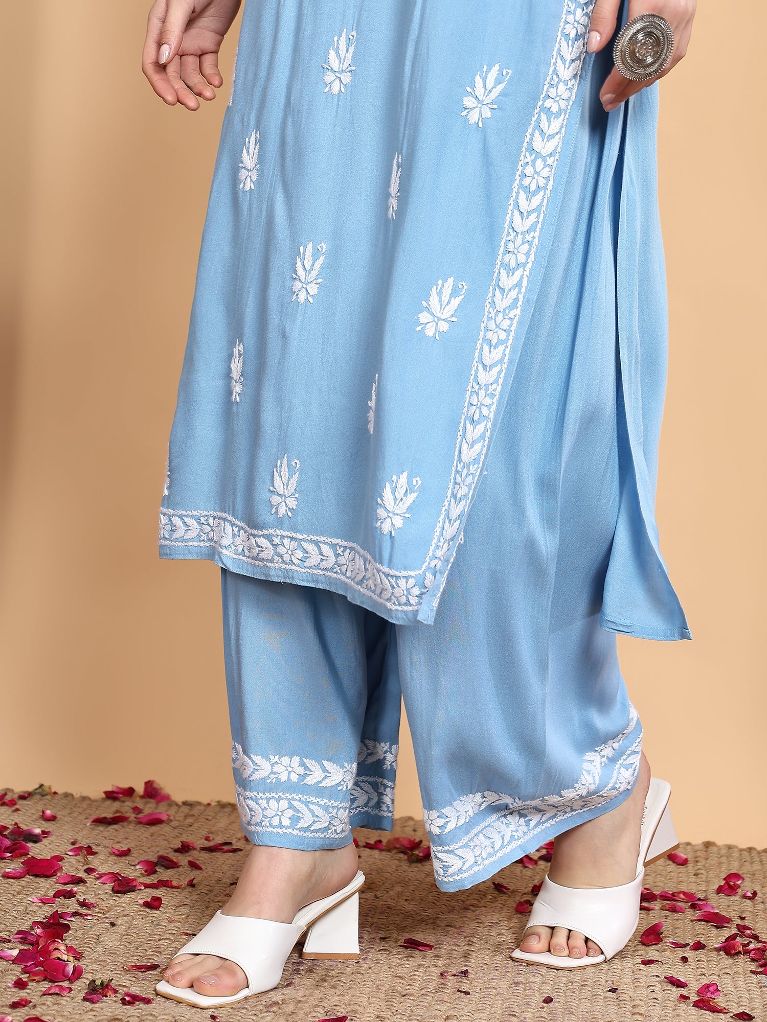 Achieve an effortless look with the Haya Chikankari Rayon Co-ord set which has a seamless fusion of traditional and contemporary style. Made of premium rayon fabric, this co-ord set is super comfortable and not heavily constricting, perfect for all day wear like in the office. The signature chikankari embroidery from Lucknow is lavishly embroidered on, which adds elegance and sophistication which makes it a stand out piece in your wardrobe. This outfit works wonders with minimal work for sundry events whether it be brunch, festive as well as casual events.