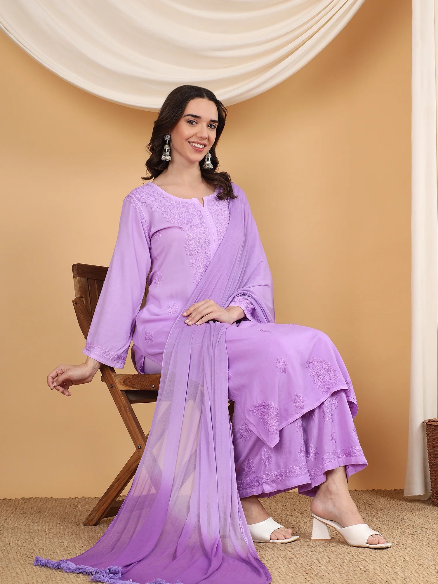 The Chikankari embroidery has existed for centuries through skilled makers have delicately woven each stitch into this co-ord set. The ombre color technique provides modern flair to this garment which ensures its perpetual popularity in your fashion collection. Made for contemporary women who love to mix historical elements with modern fashion trends this outfit combines cultural heritage with current style trends.