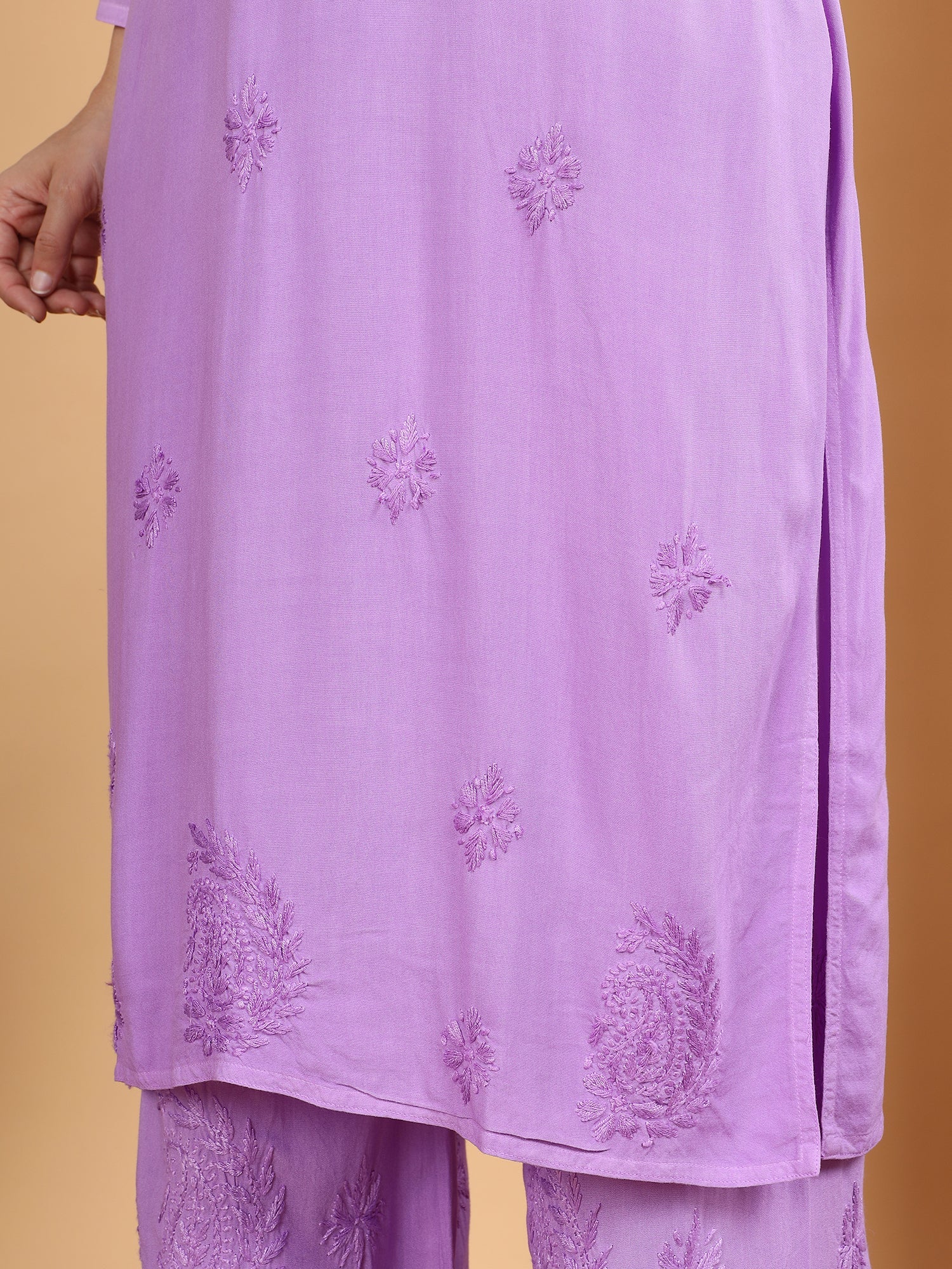 Newly launched party wear straight kurta and palazzo co-ord set with handcrafted chikankari dyed in exclusive colors.