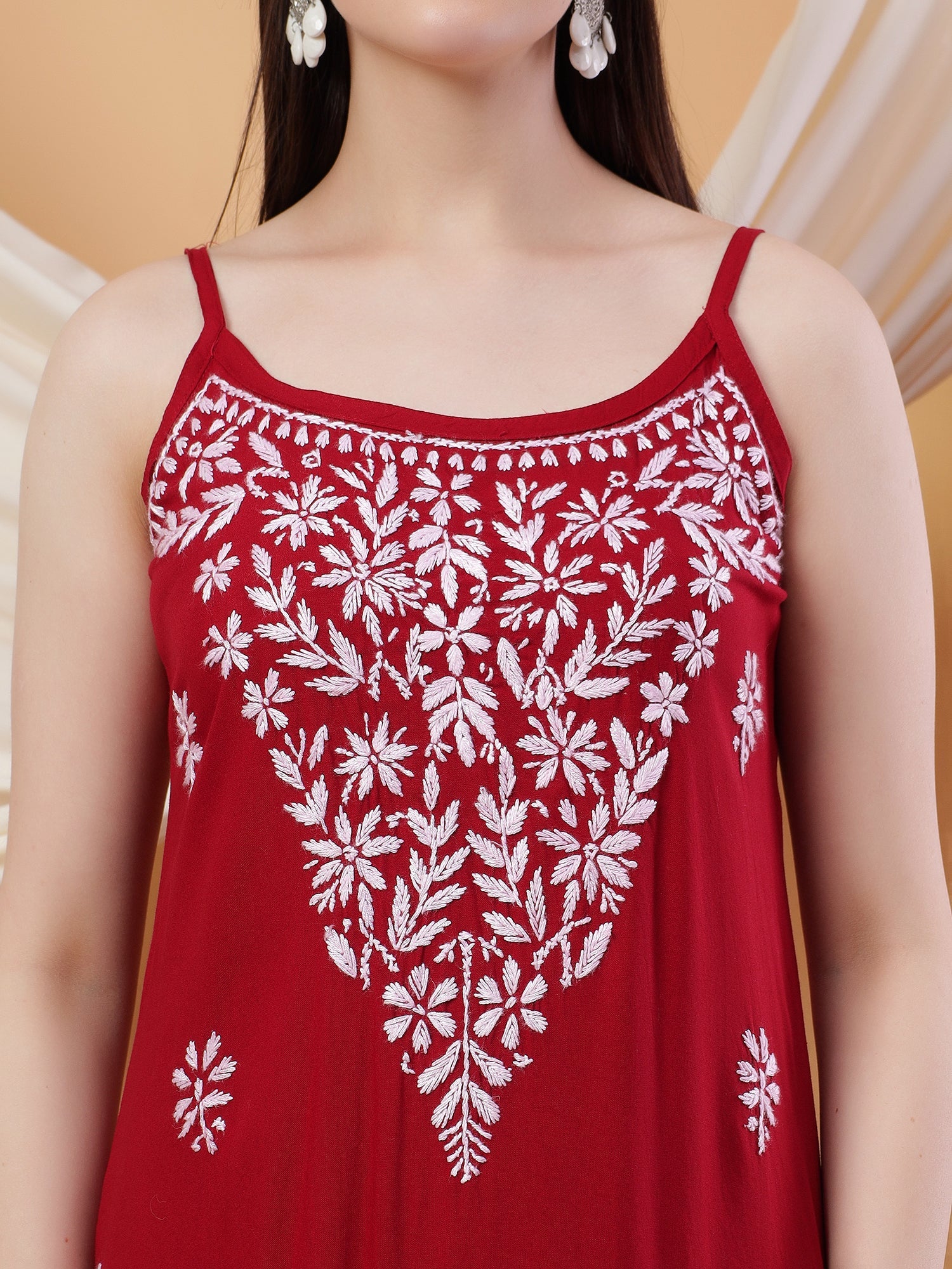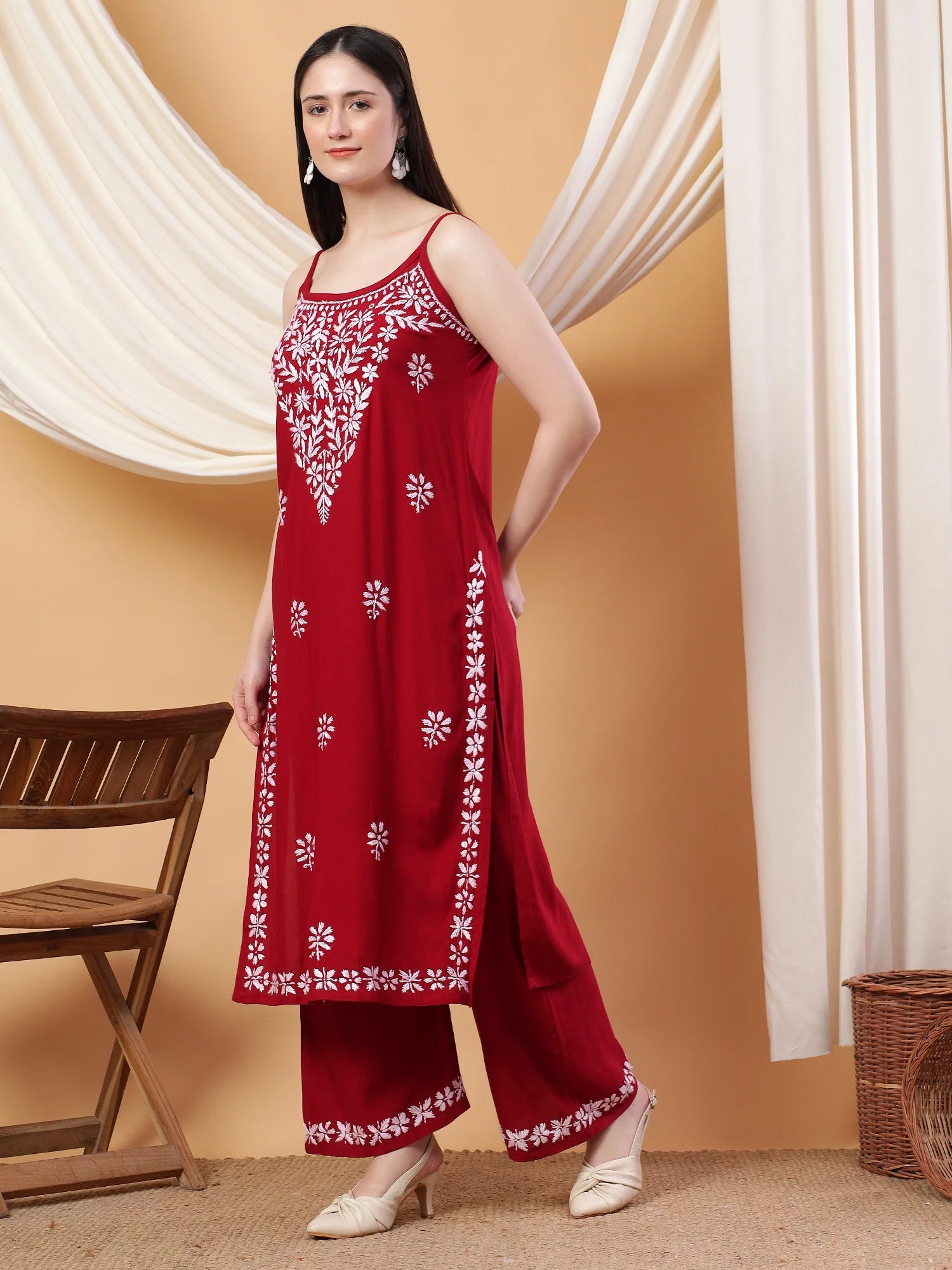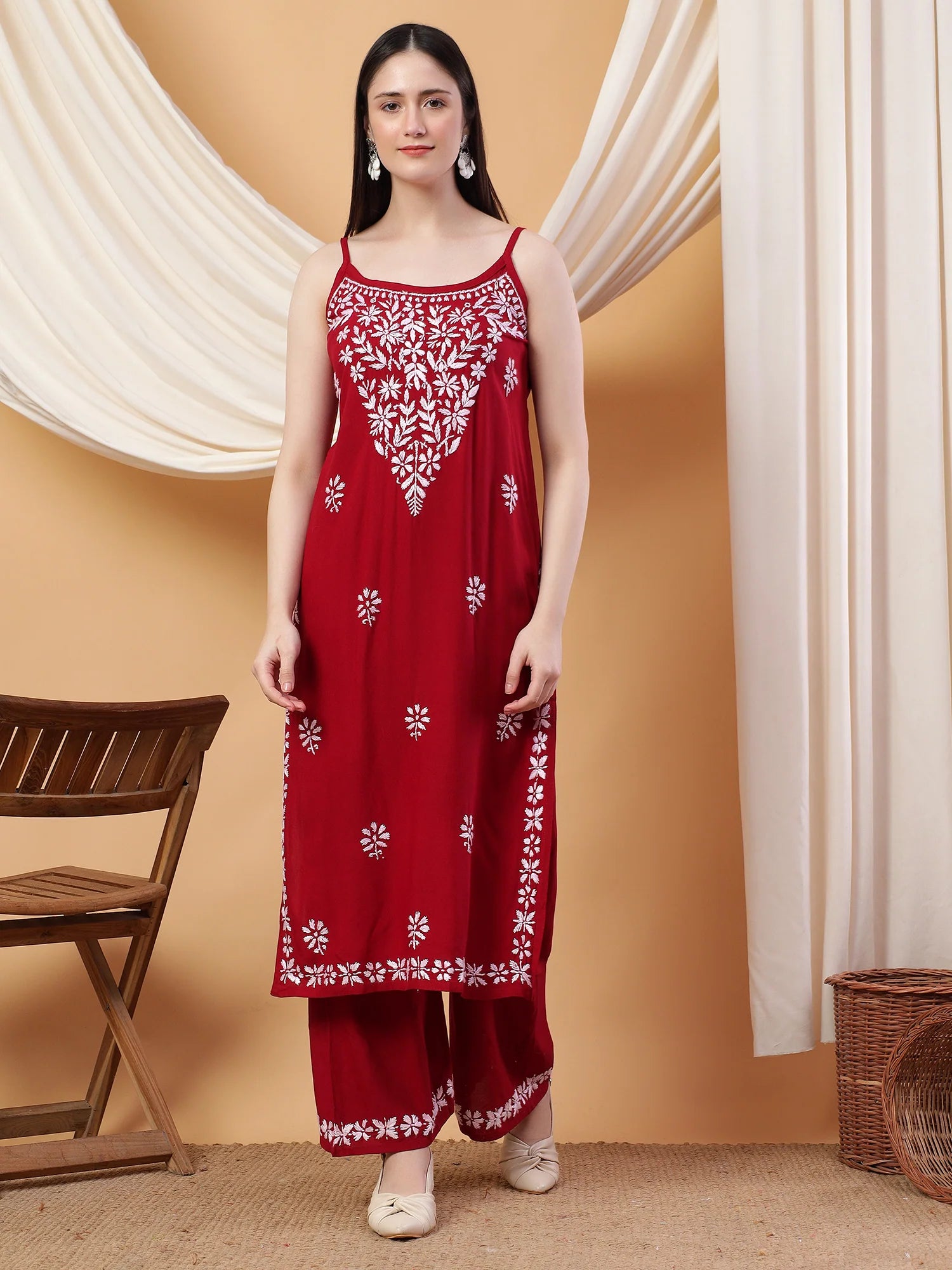 PRODUCT DETAILS : Raha Chikankari Strappy Rayon Co-ord Set