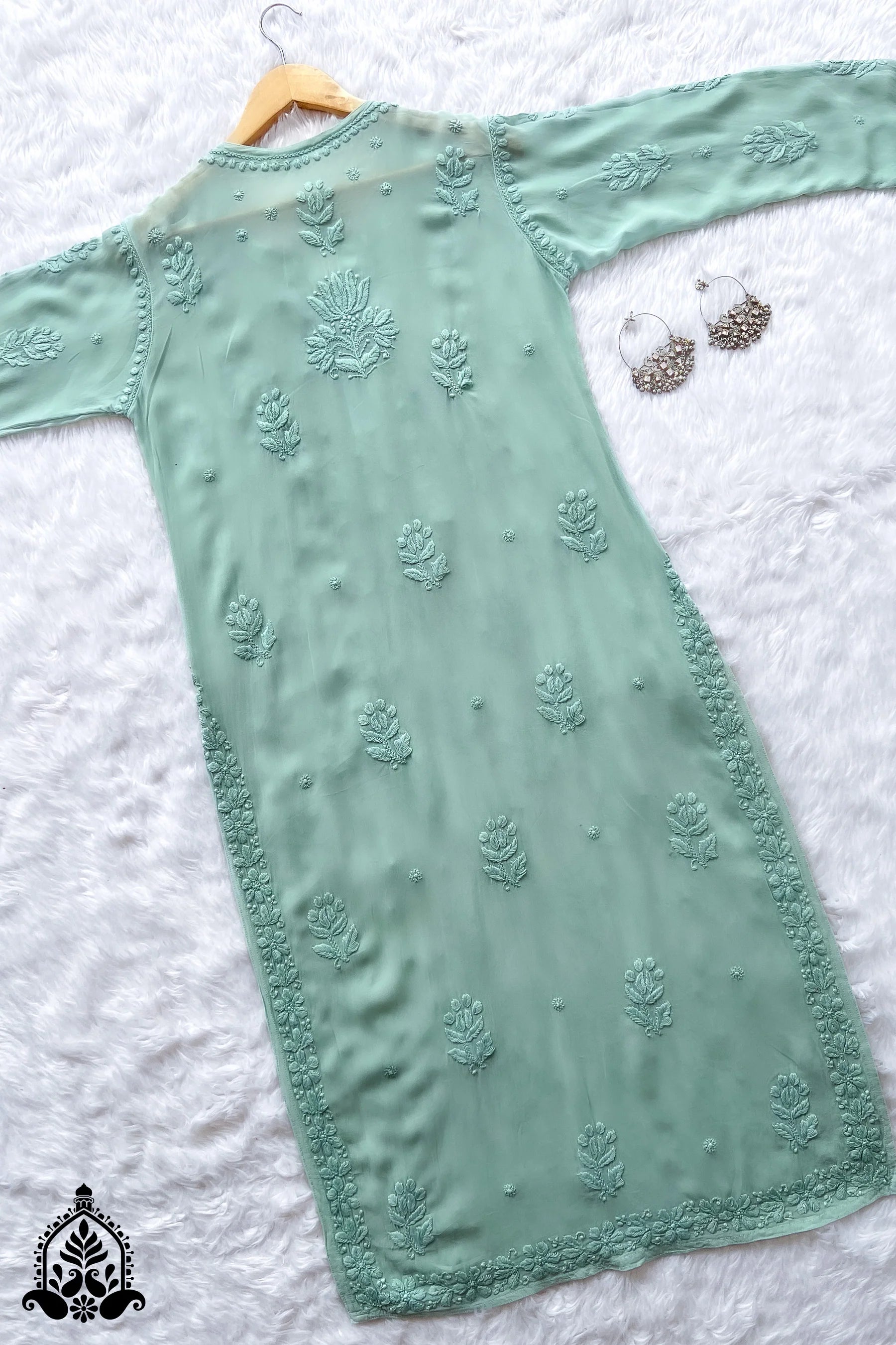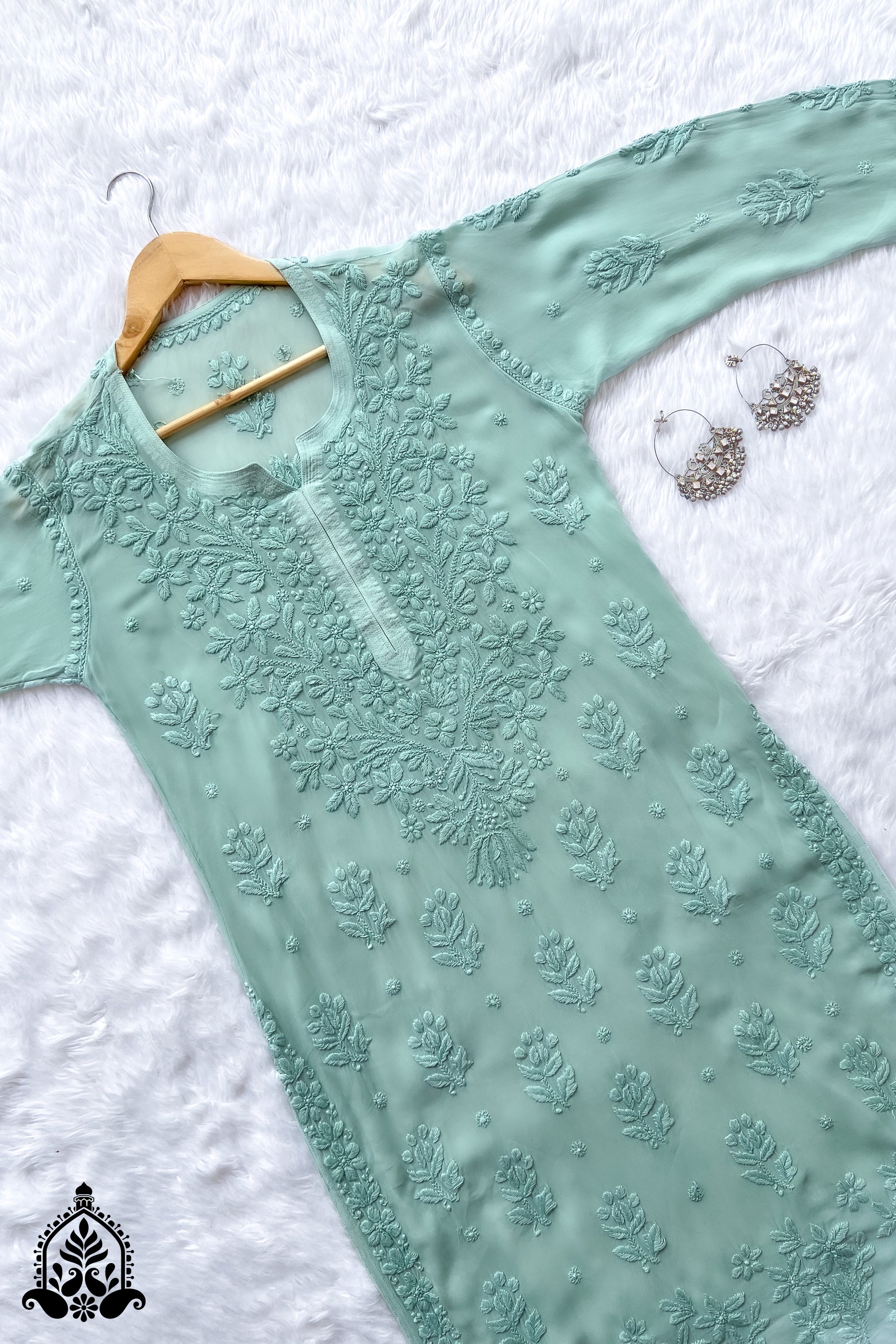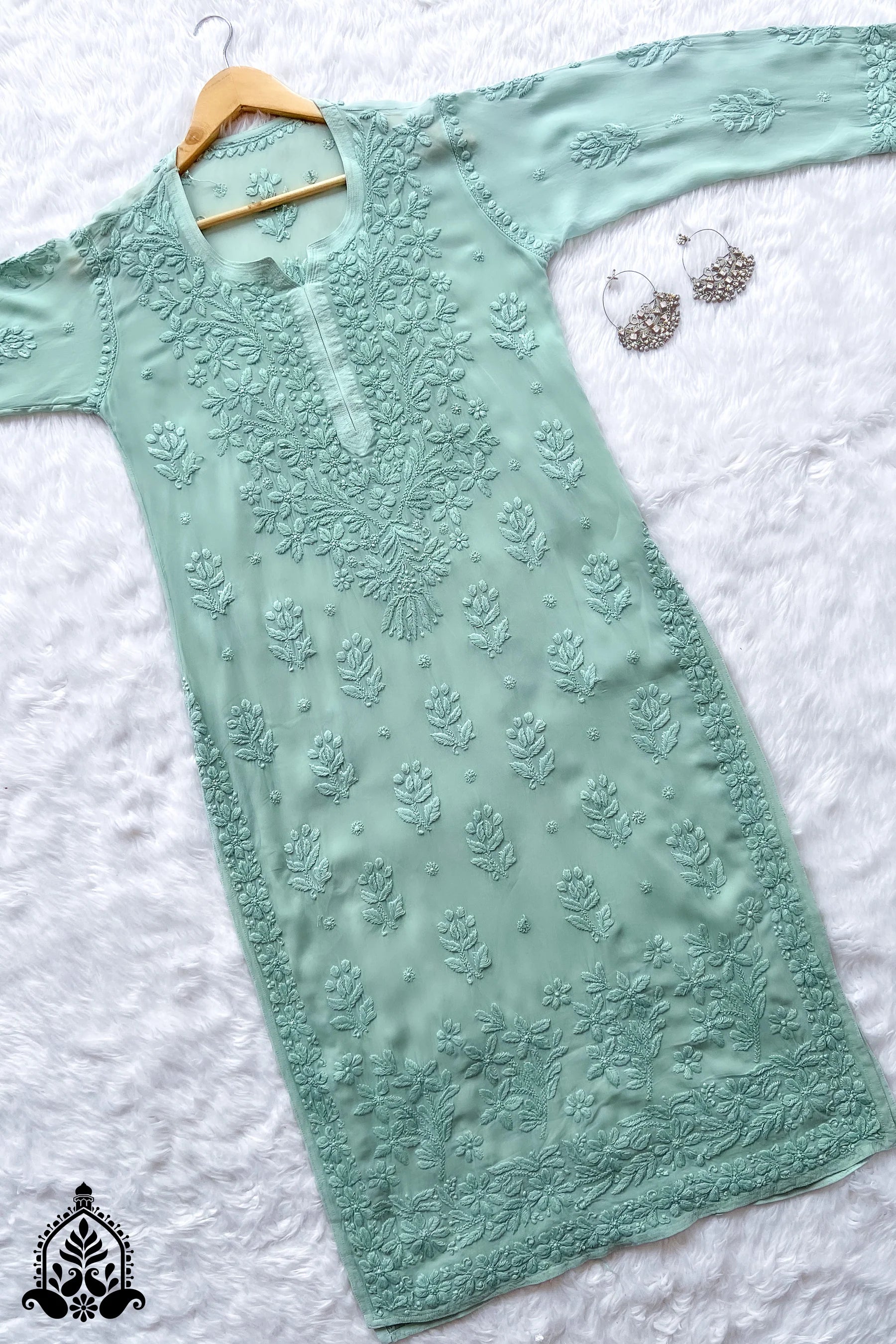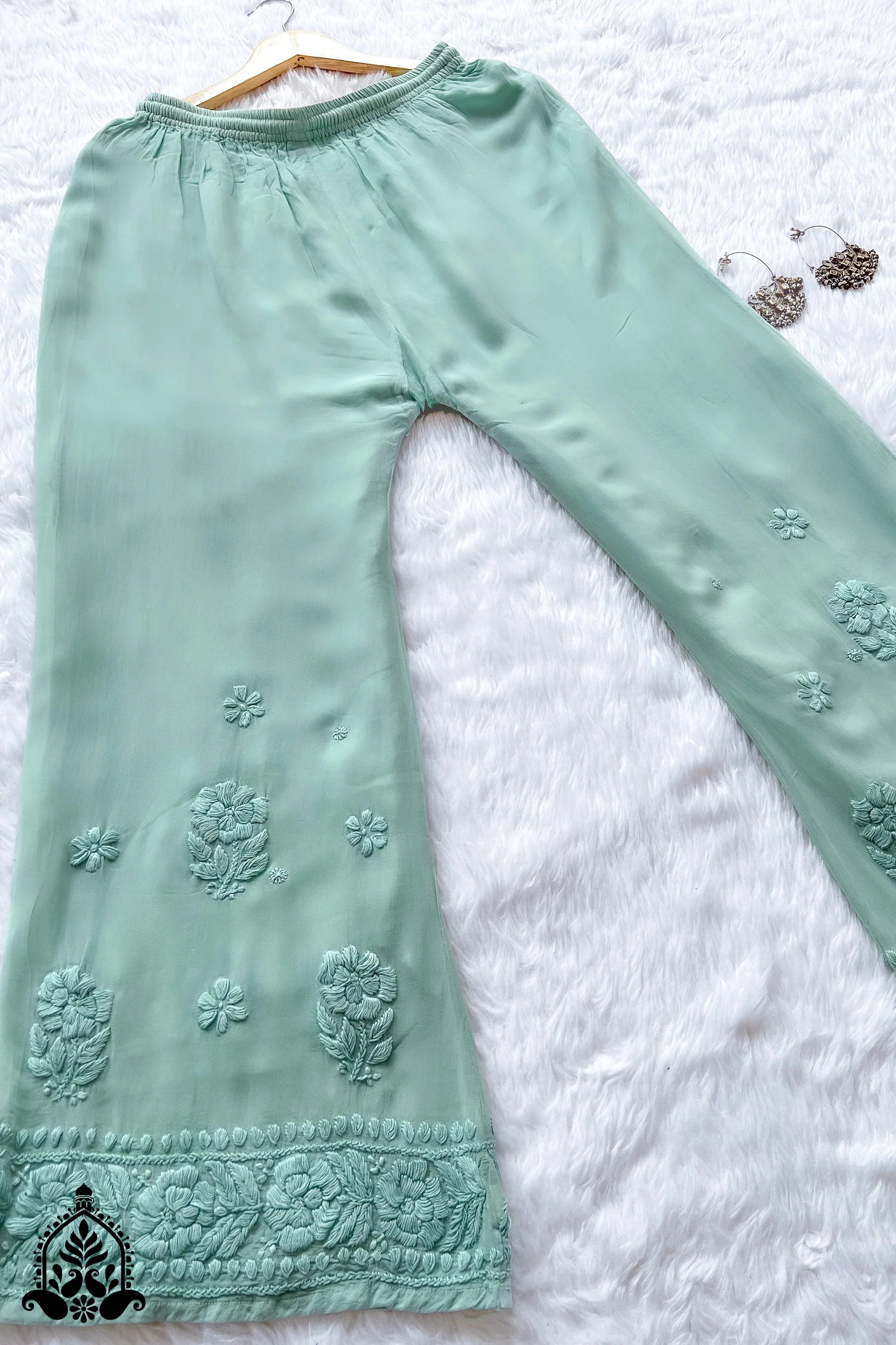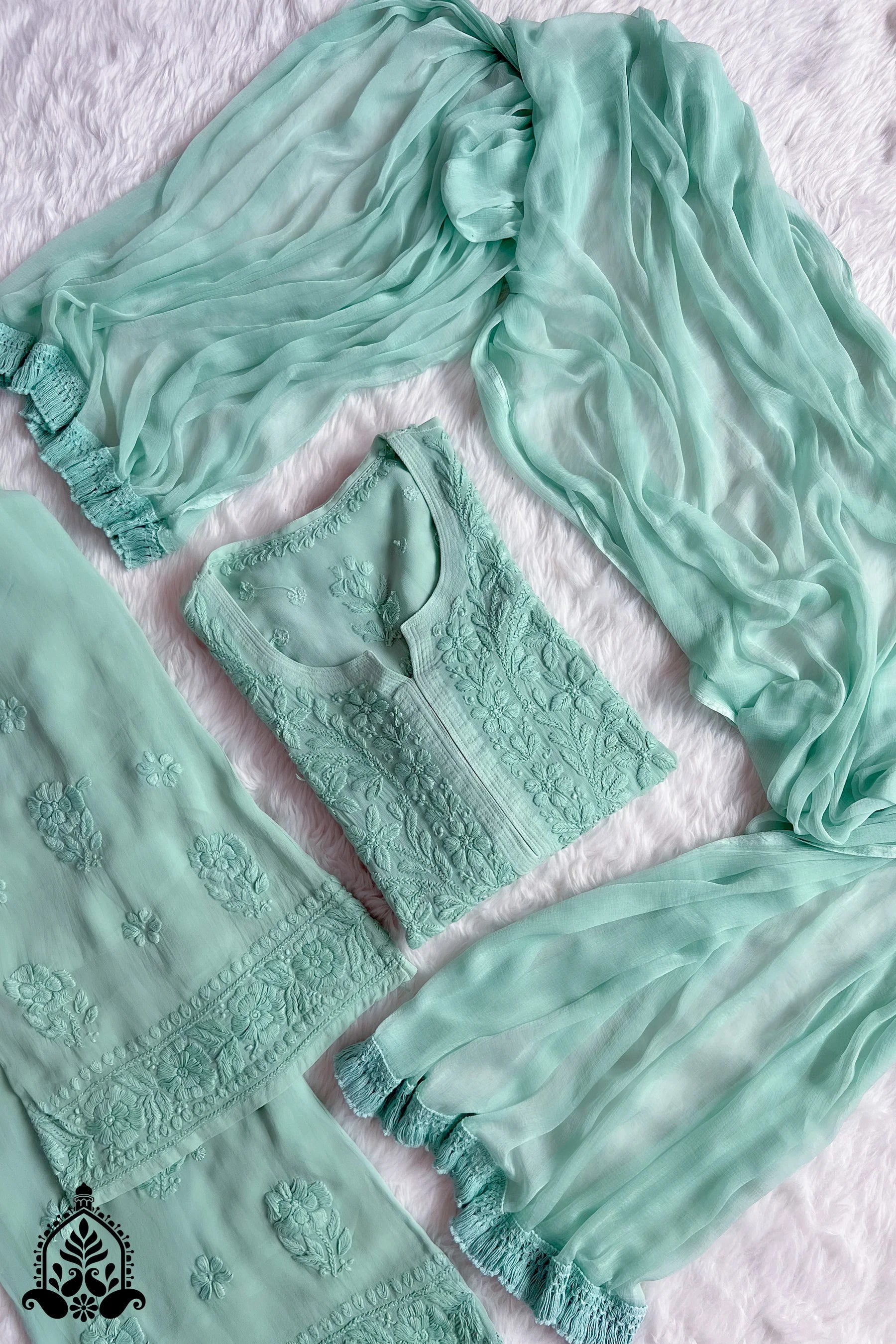 Newly launched party wear straight kurta, palazzo, dupatta & inner (FREE) co-ord set with handcrafted chikankari dyed in exclusive colors.