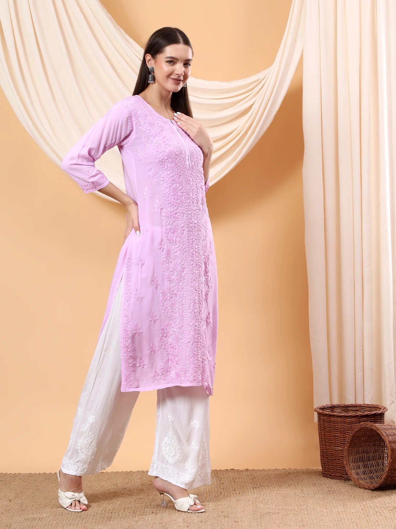 Versatile Styling : Women can wear this chikankari kurta with jeans, palazzos, or leggings.