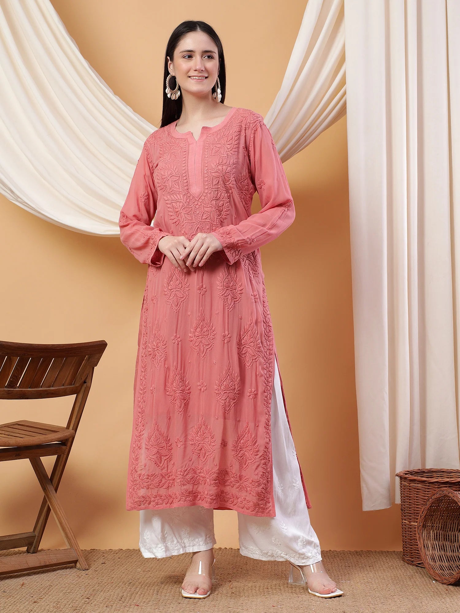 Dua Premium Viscose 3D Chikankari Straight Kurta (Rose gold)