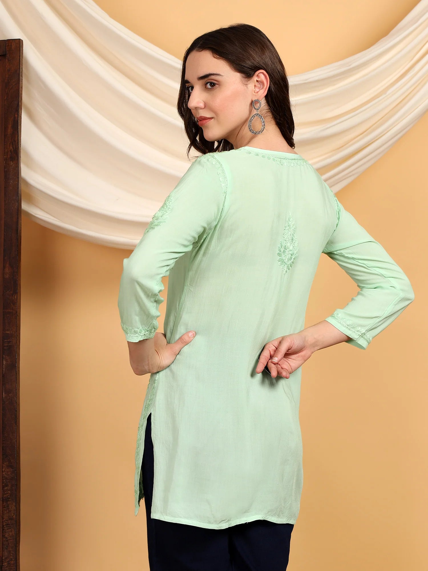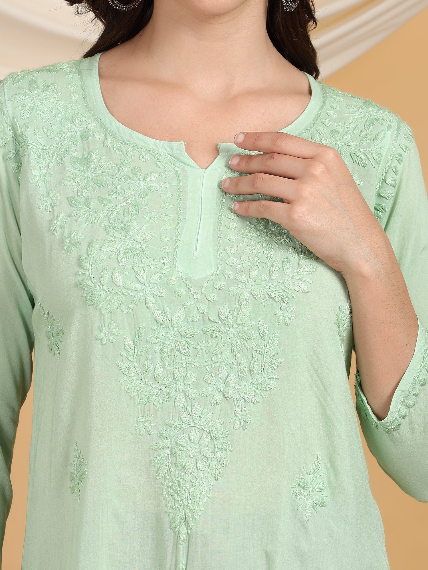 Misha Chikankari Modal Short Kurti (Pista Green)