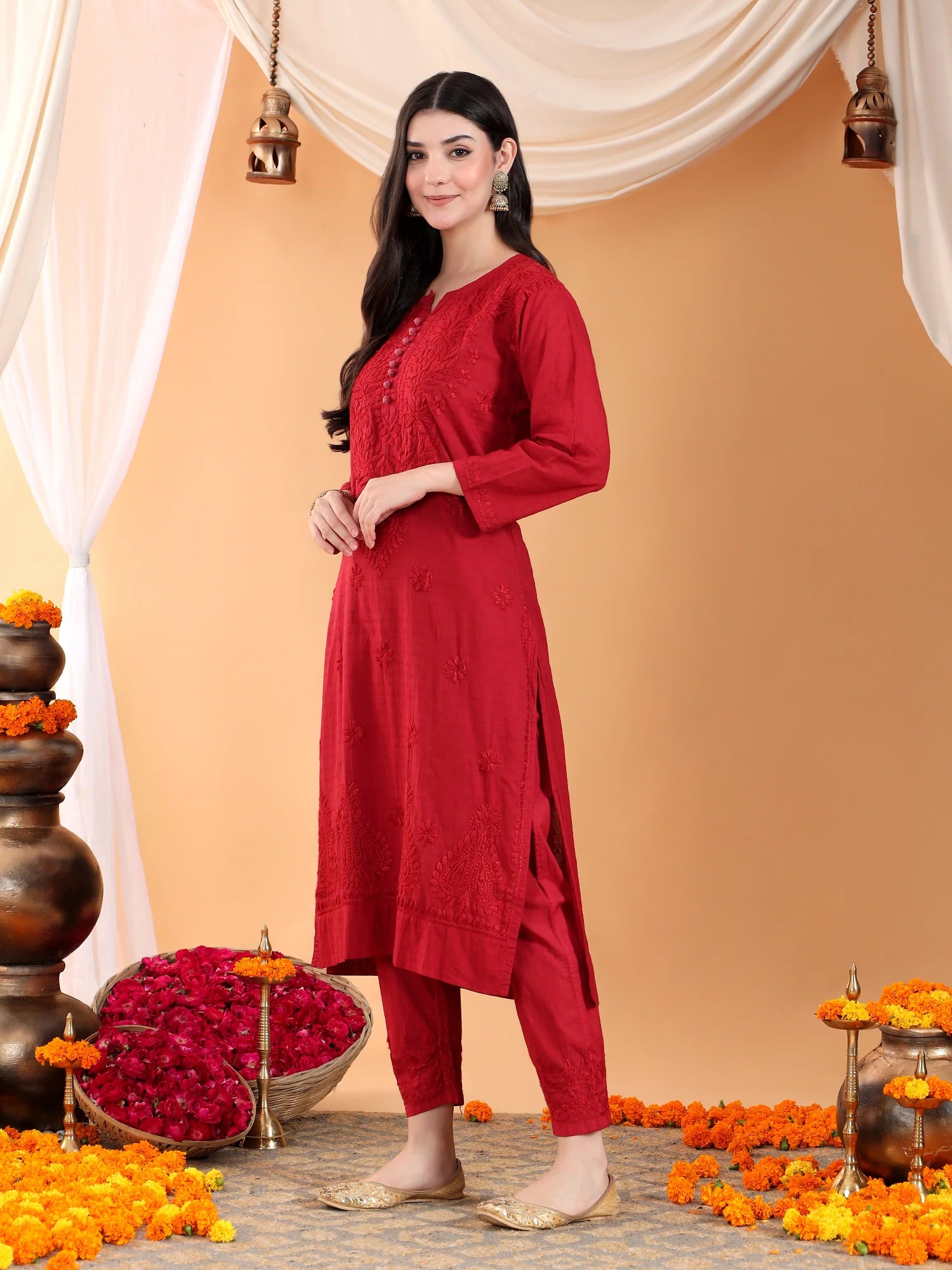 Festive wear chikankari 2-piece co-ord set with exquisite hand-embroidered motifs, the perfect outfit for any occasion.