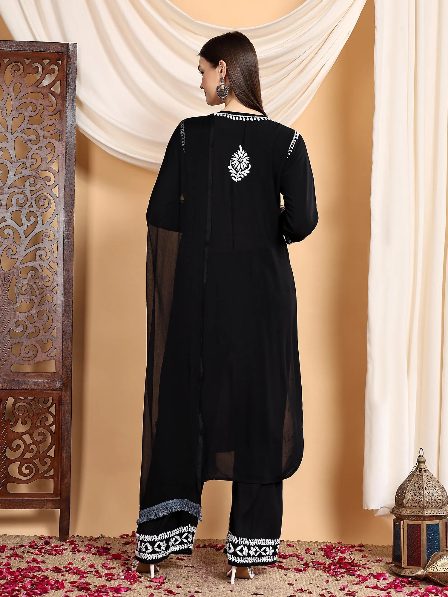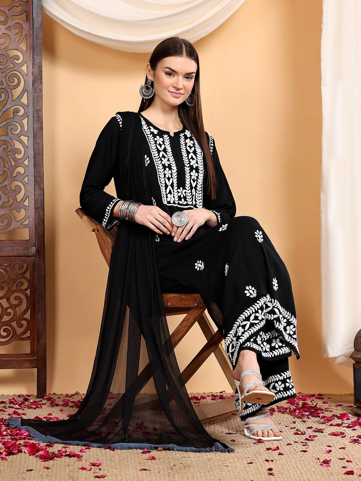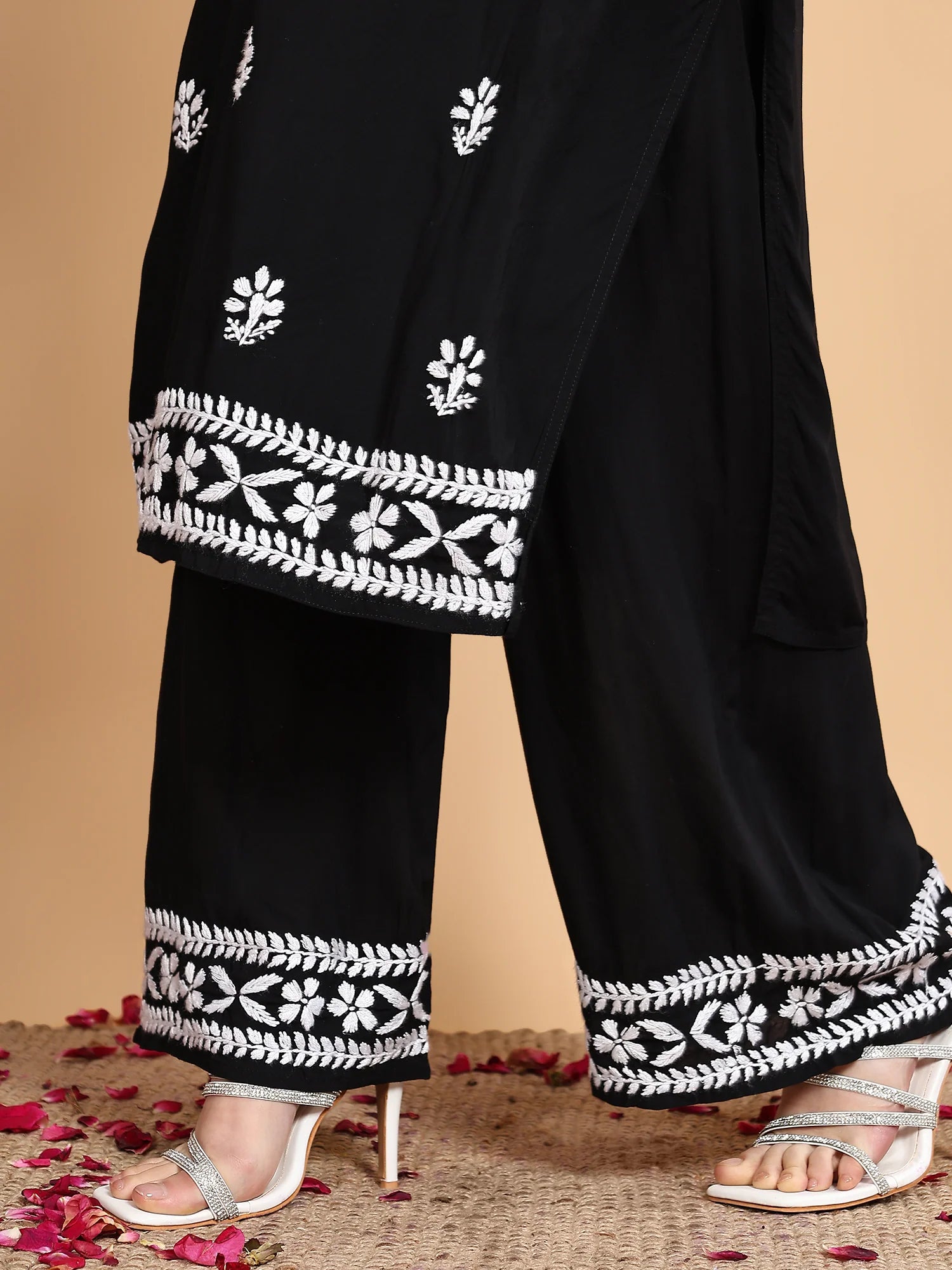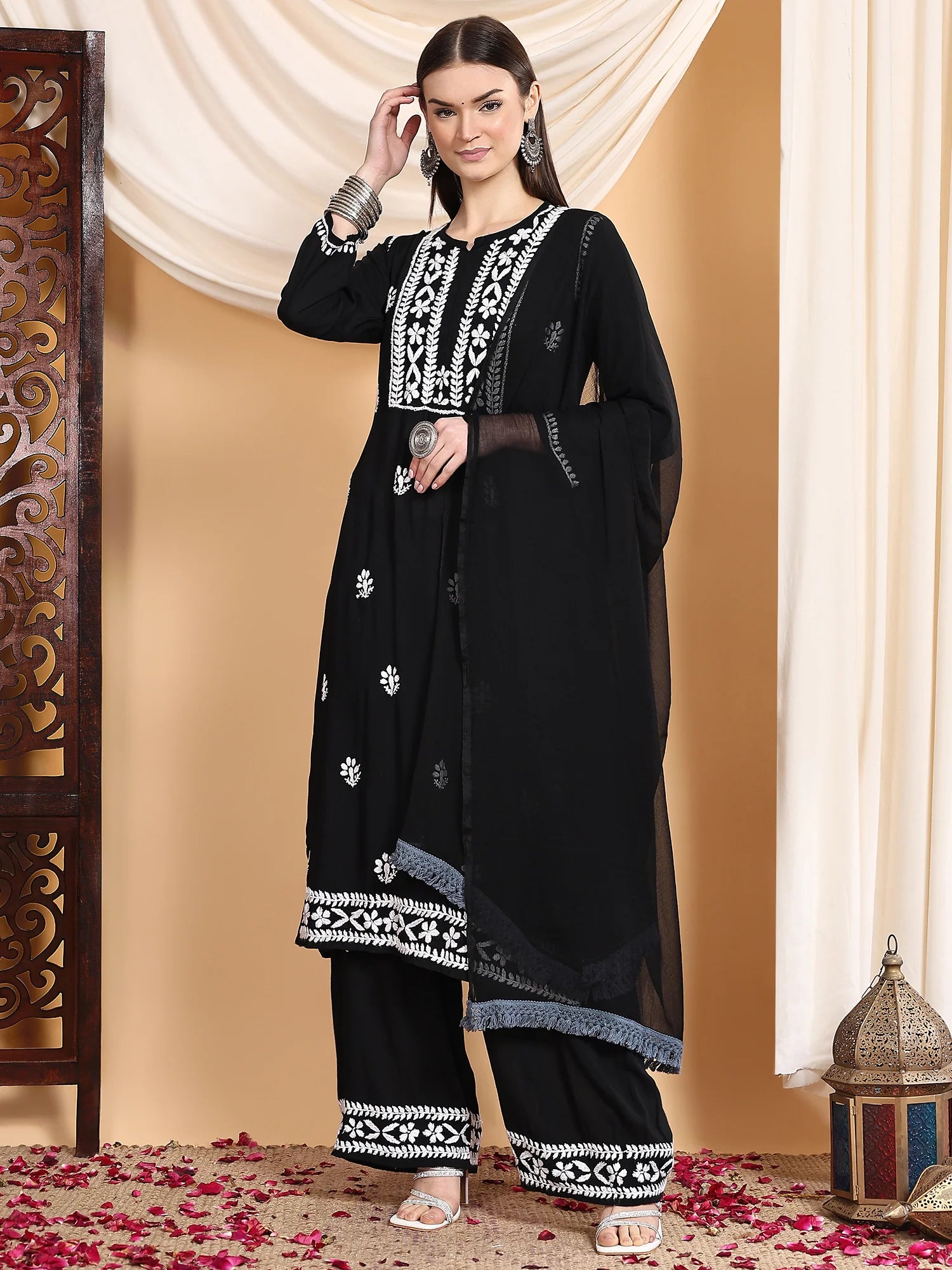 Workmanship: Hand-embroidery Chikankari Work includes Kurta plus palazzo trousers and a duvet.