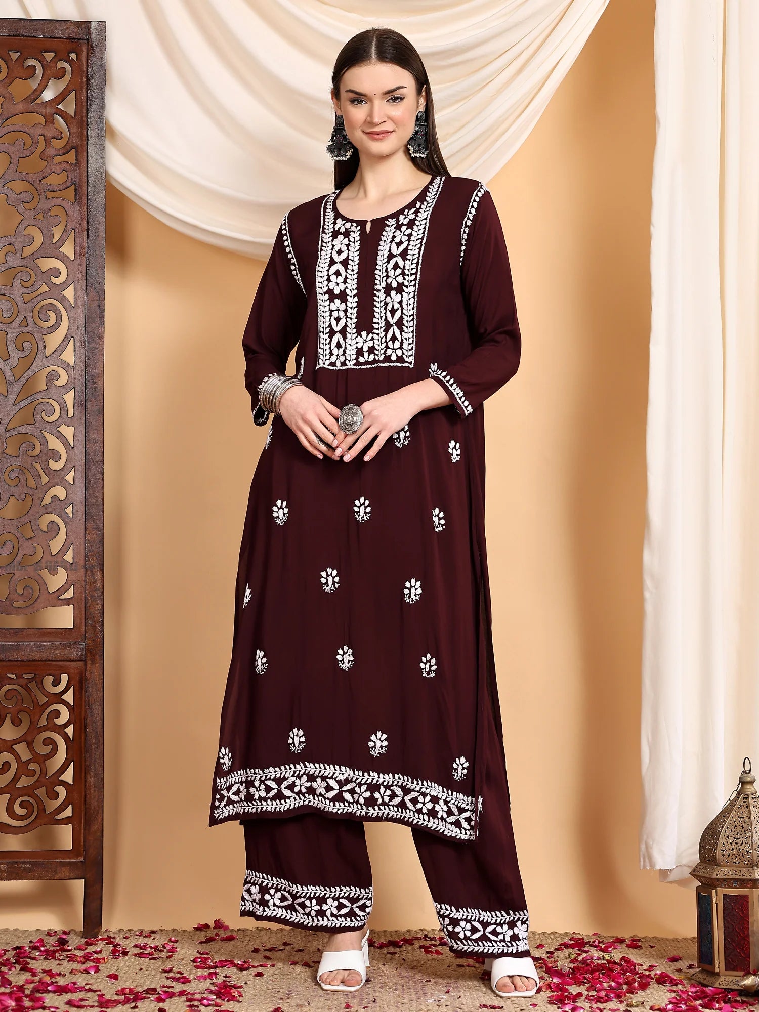 With our Shiza Chikankari Premium Modal Co-ord Set, a magnificent collection meant to revolutionise your ethnic wardrobe, enter timeless sophistication. Designed for sophisticated women who value the mix of history and current design, this opulent co-ord set