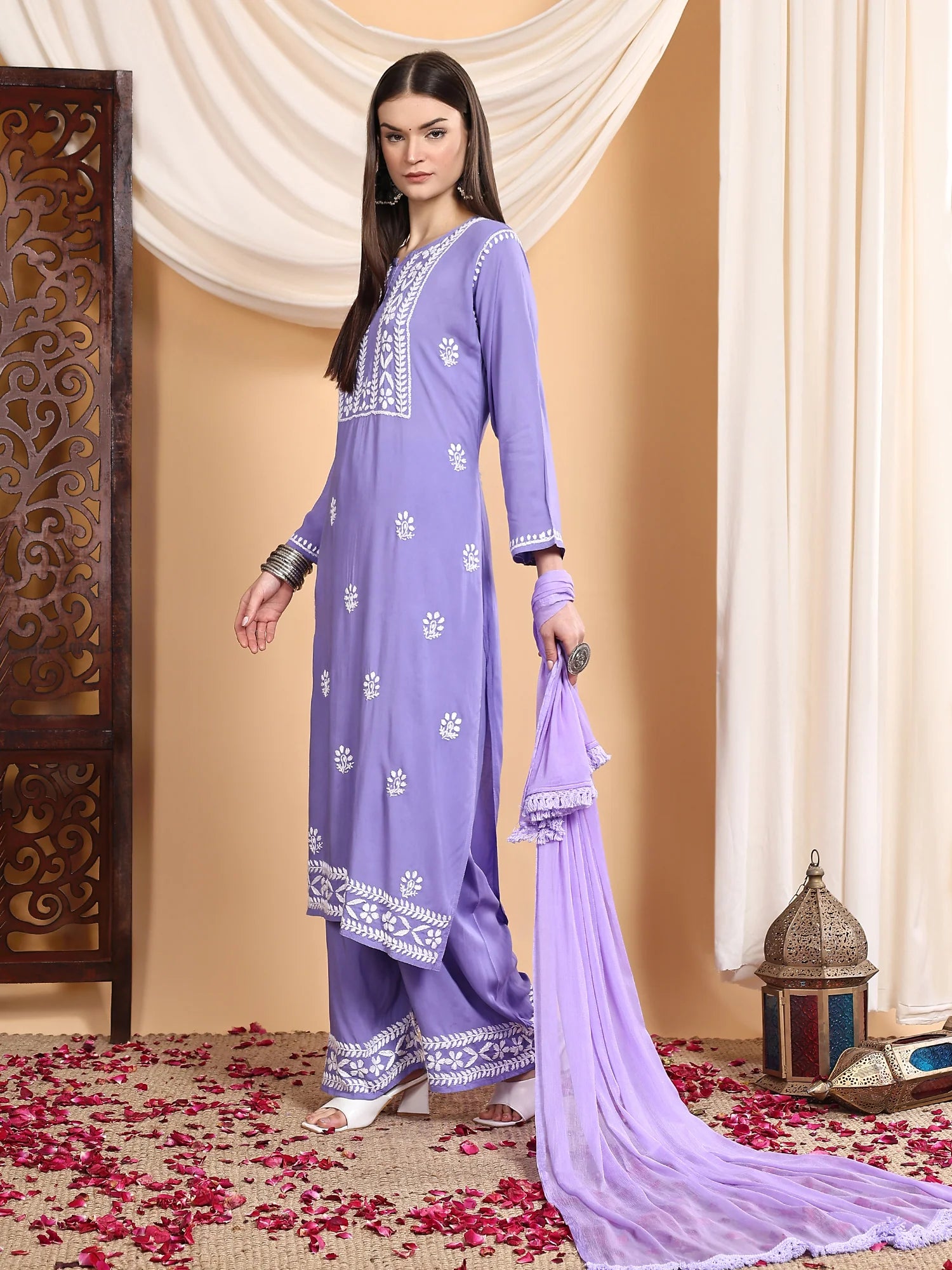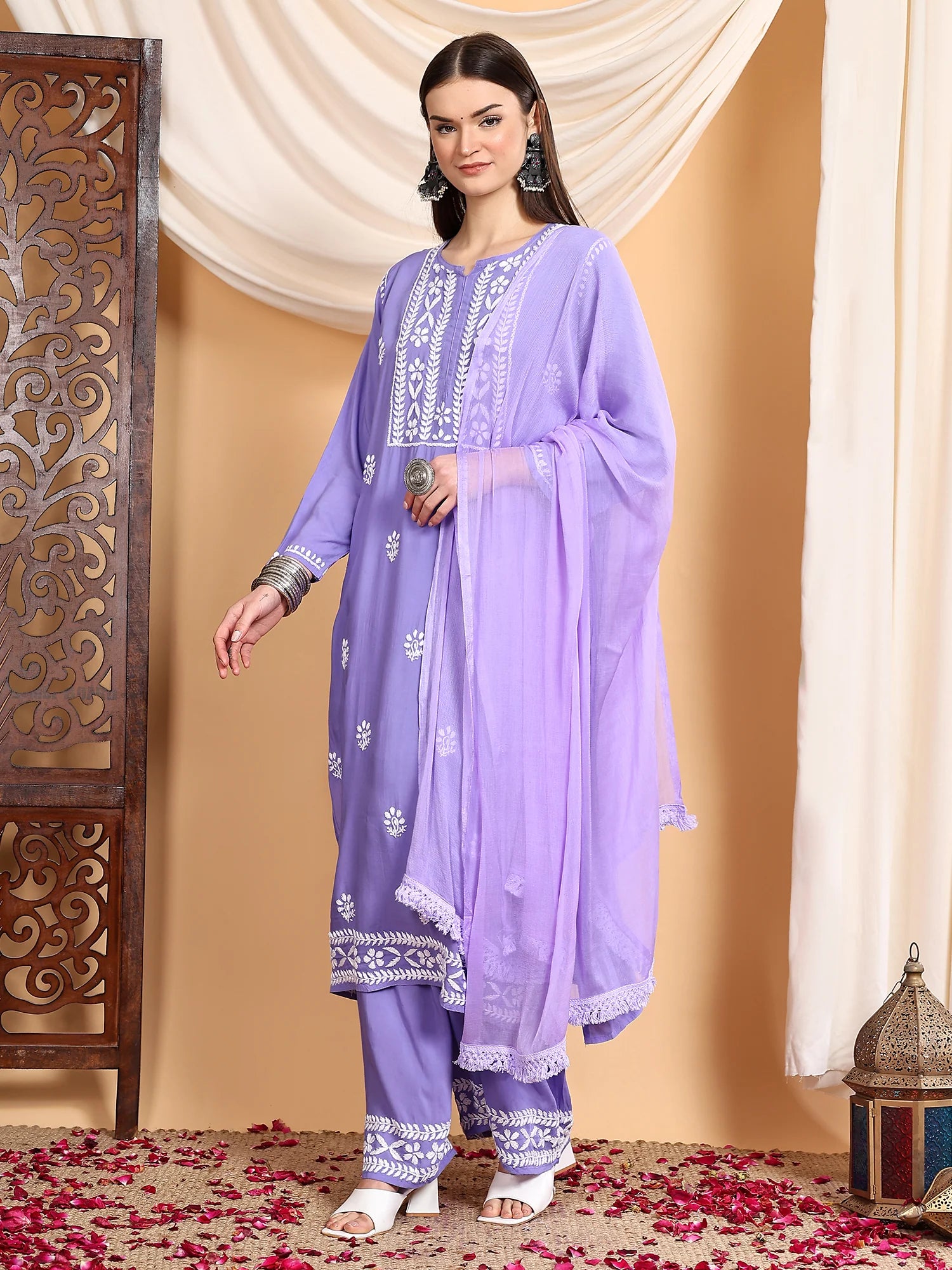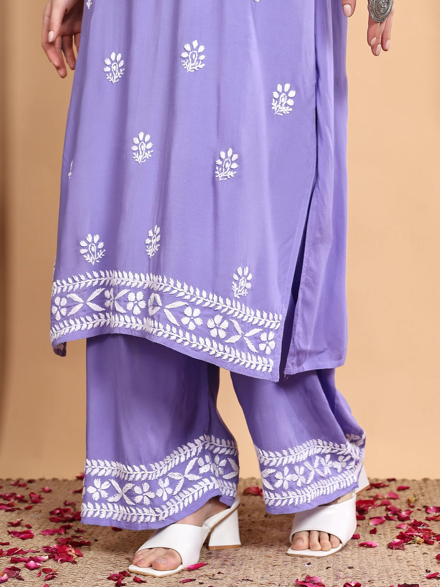 Shiza Chikankari Premium Modal Co-ord Set (Lavender)