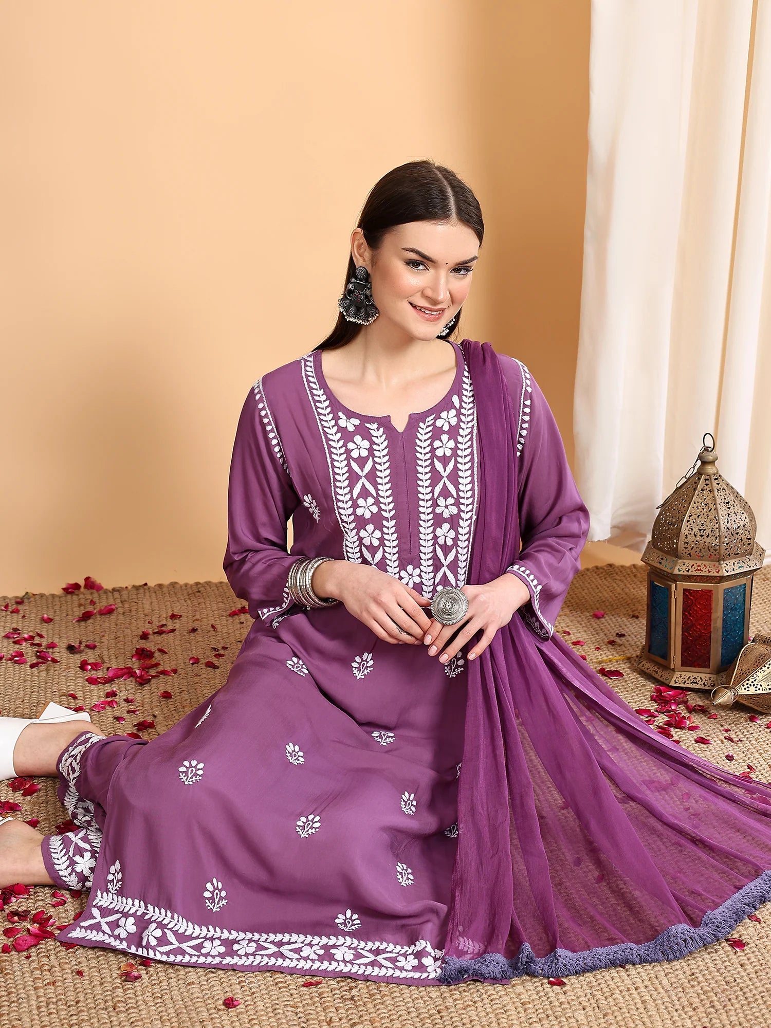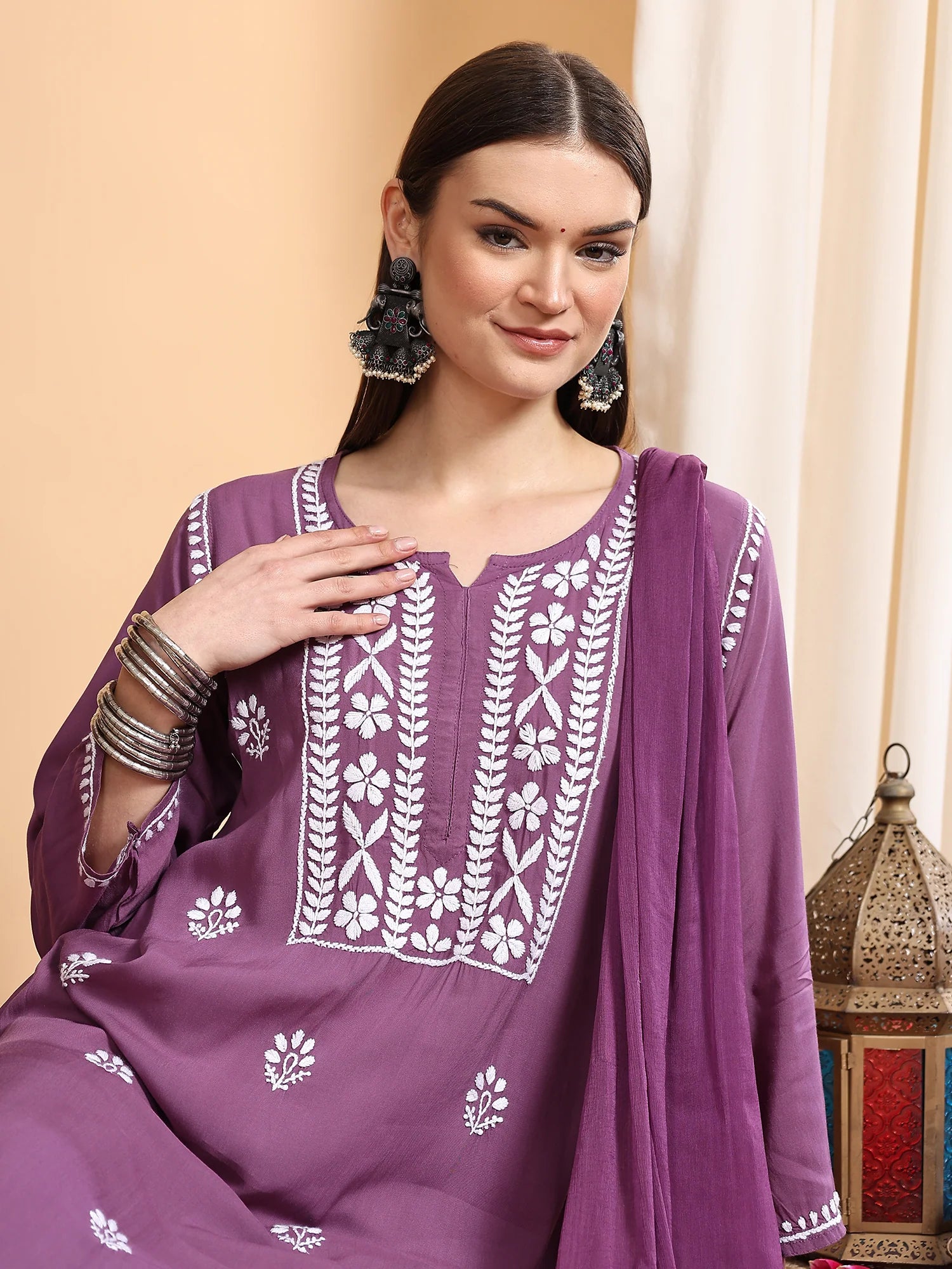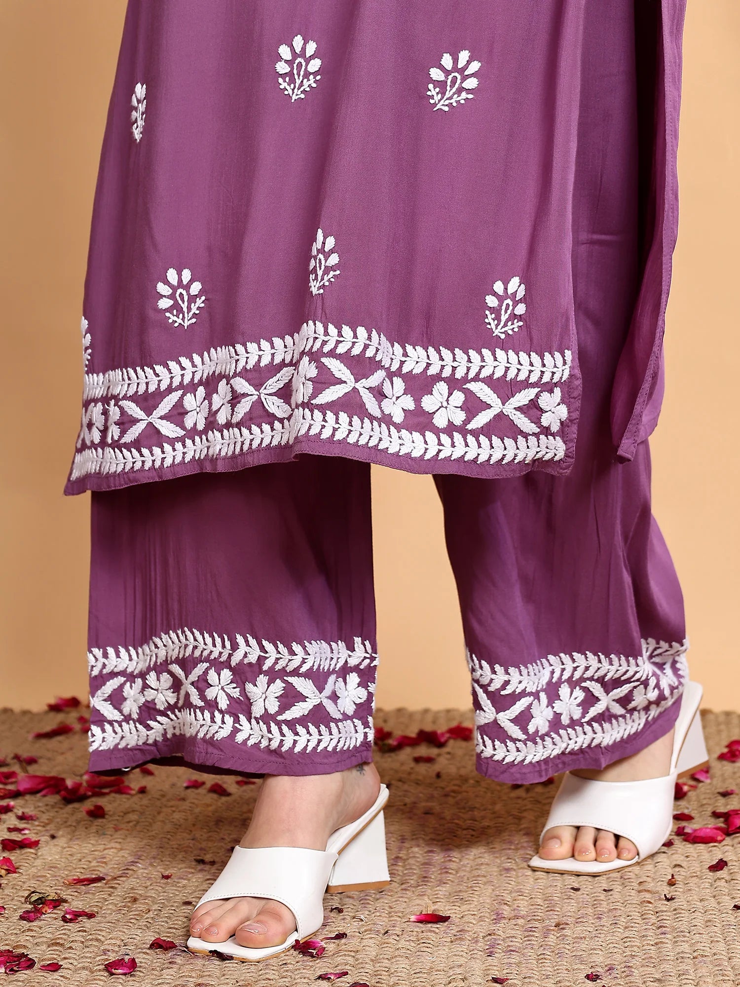 Shiza Chikankari Premium Modal Co-ord Set (Mauve)