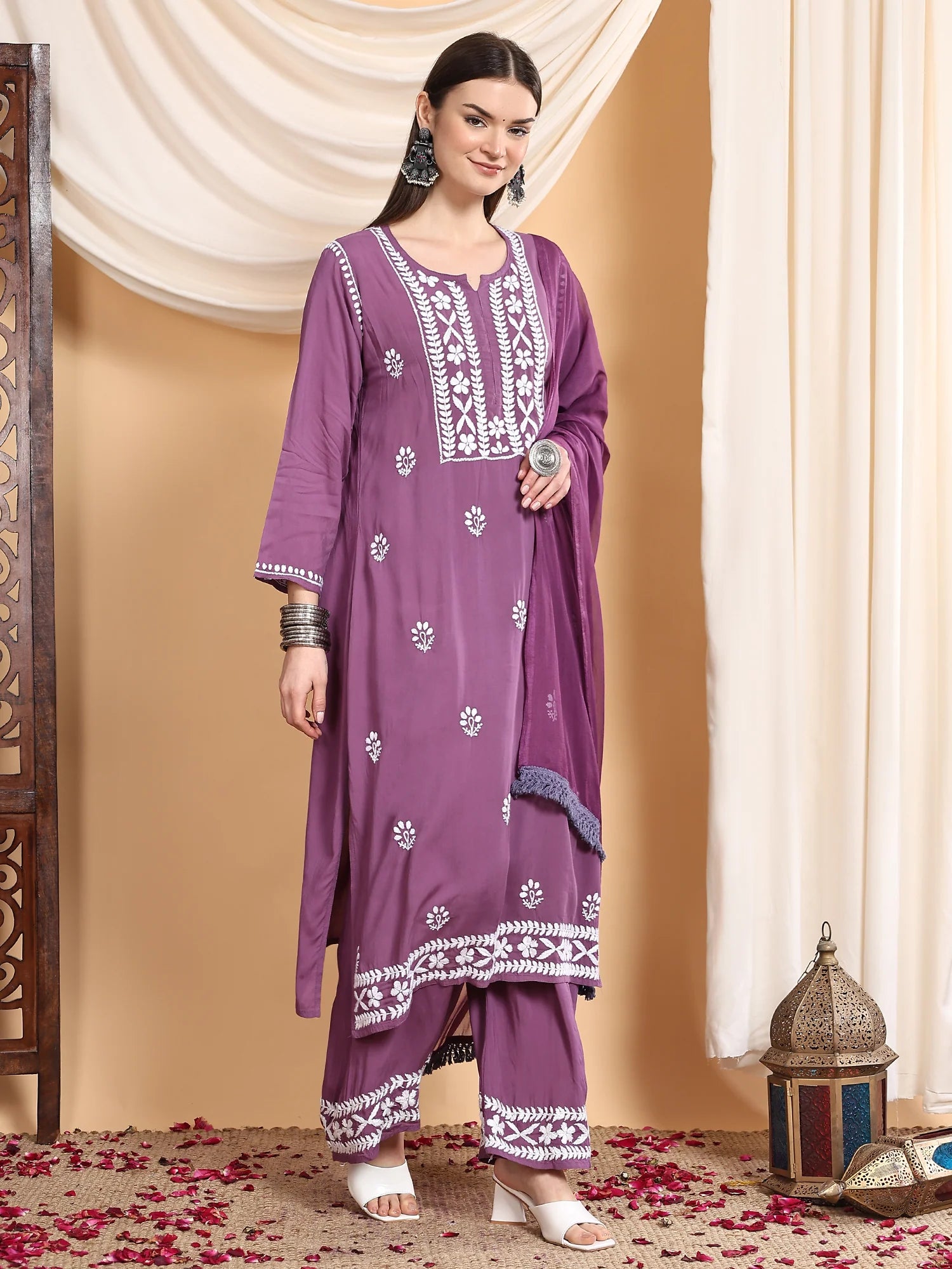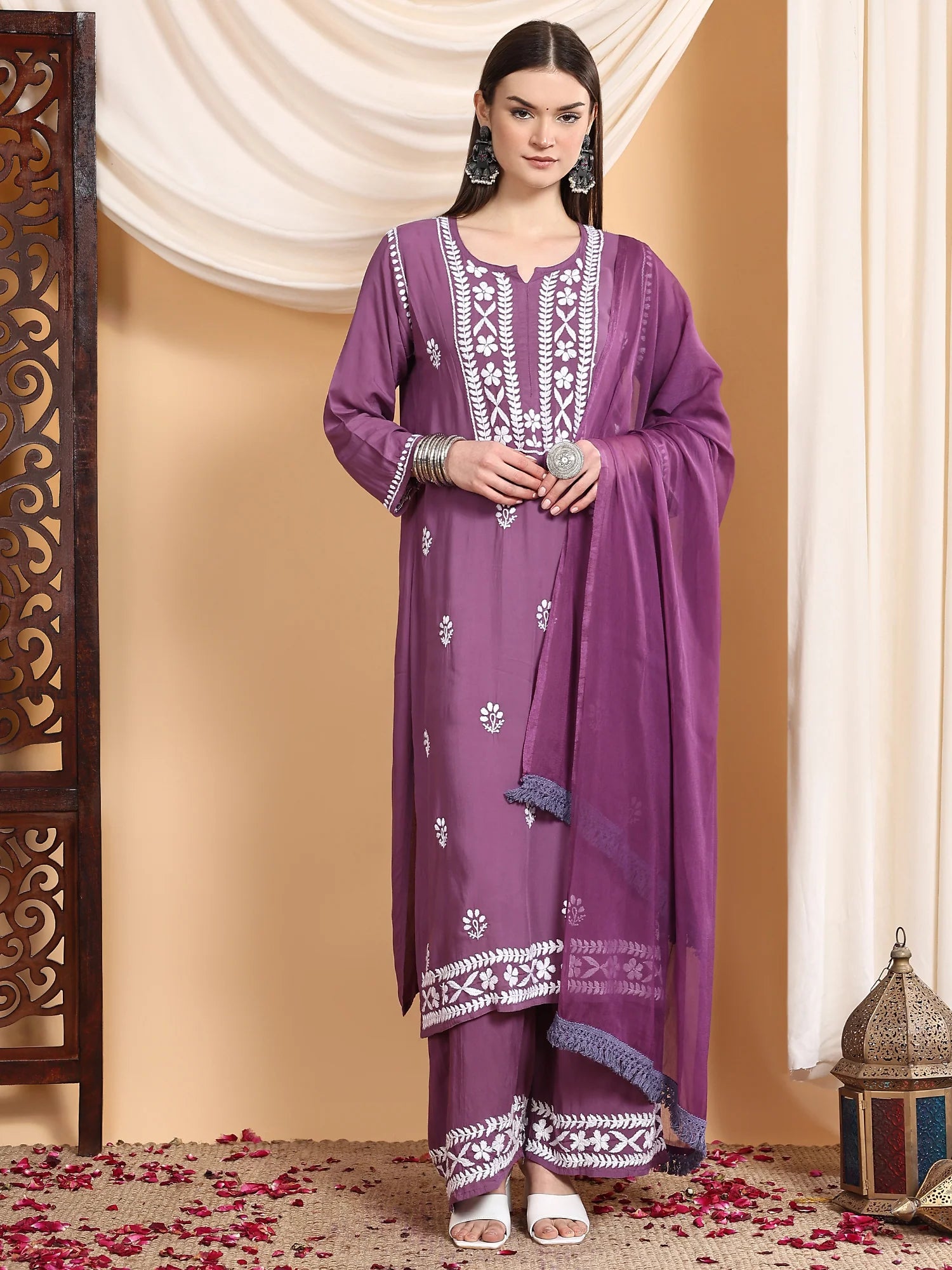 Workmanship: Hand-embroidery Chikankari Work includes Kurta plus palazzo trousers and a duvet.