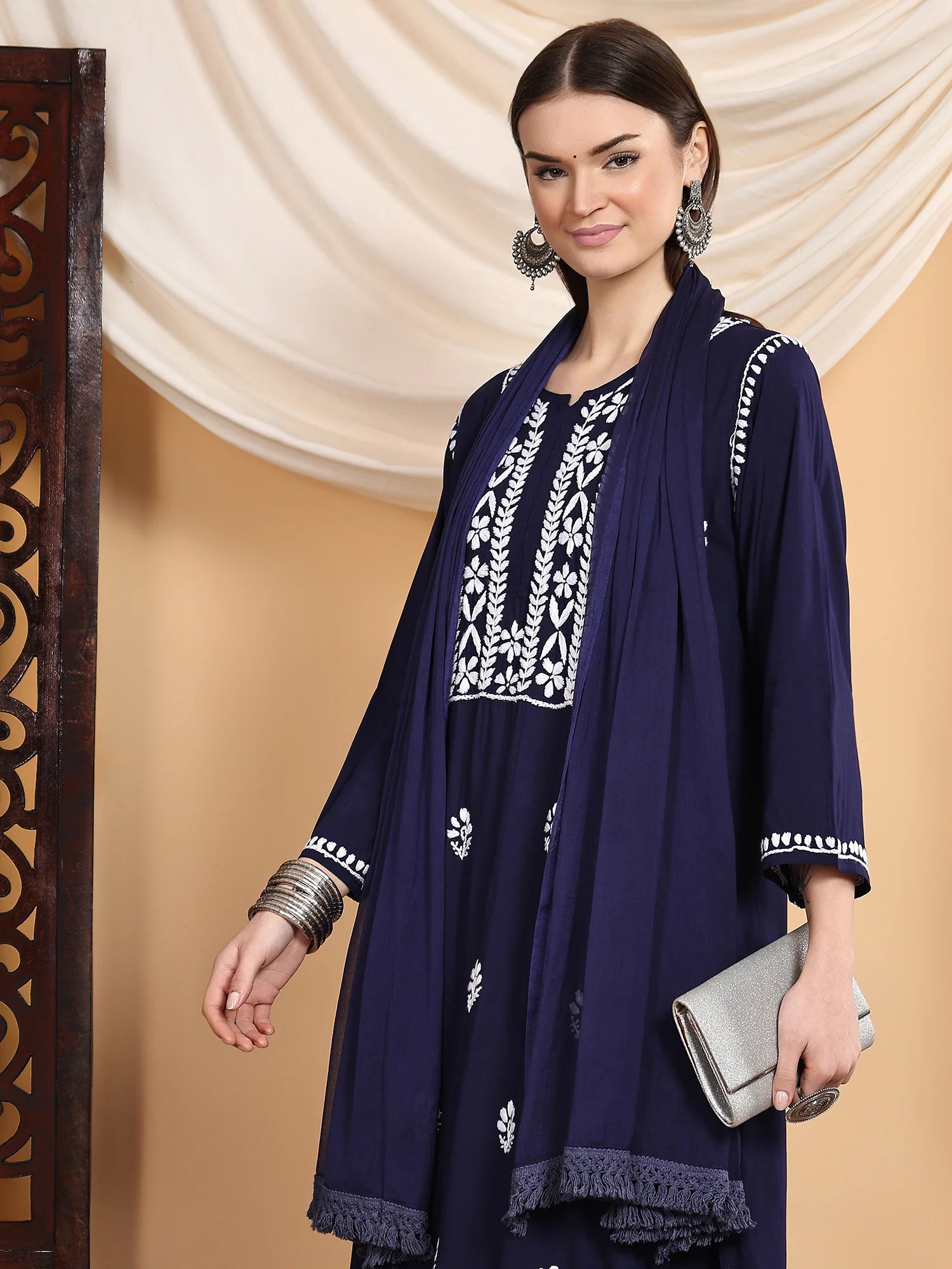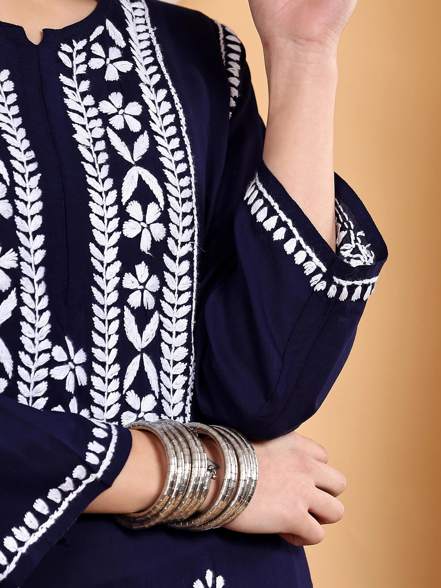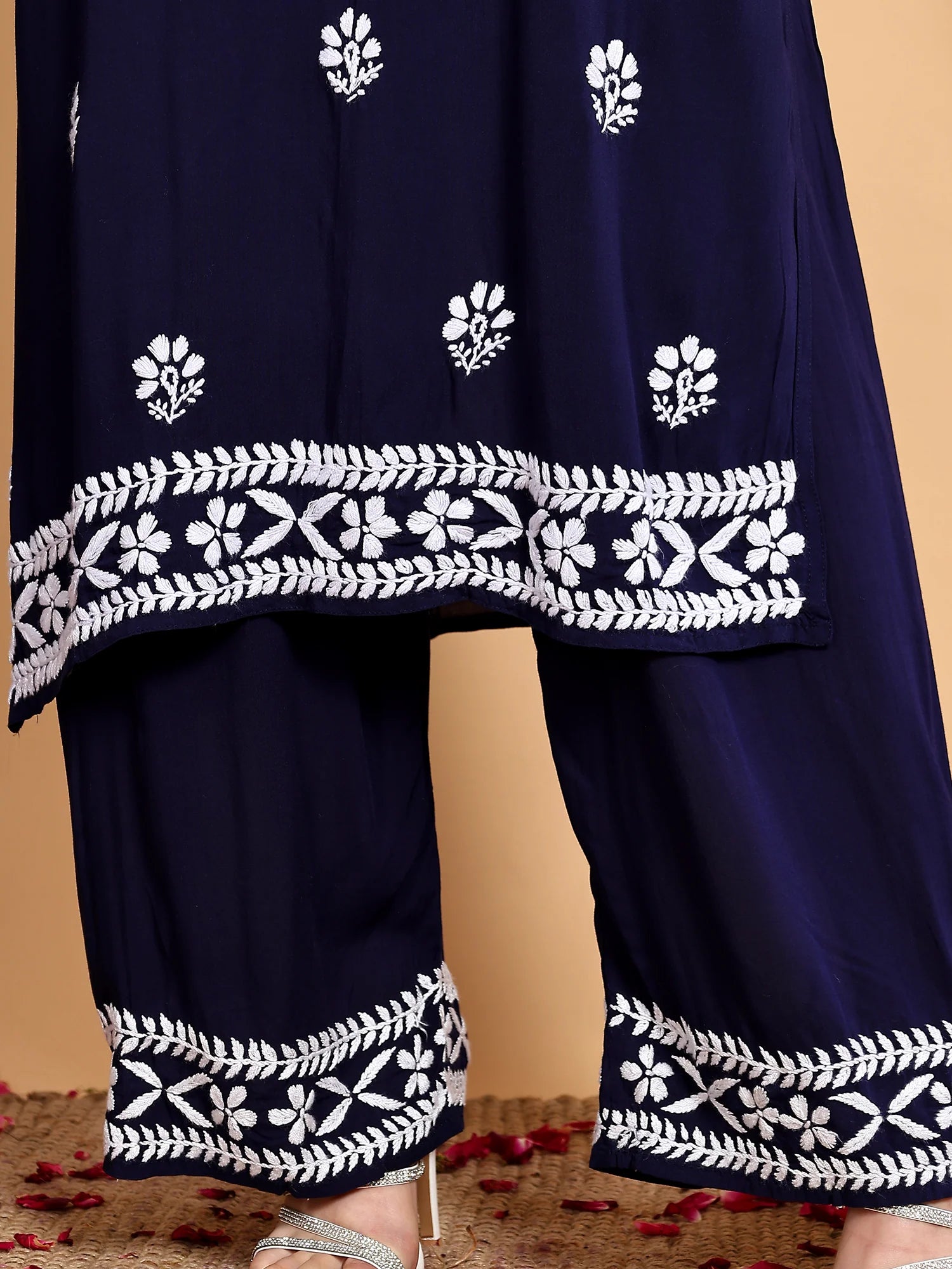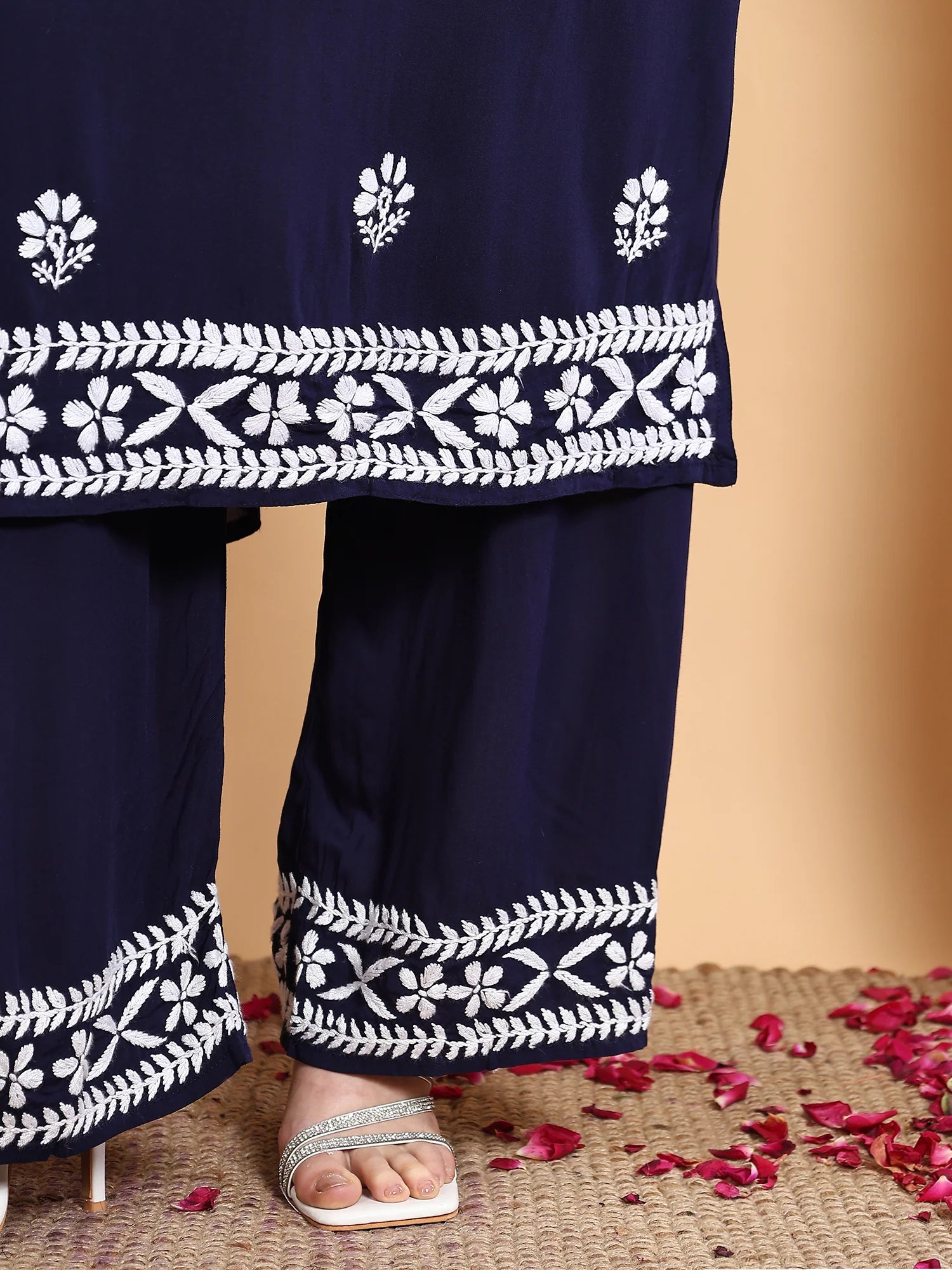 Shiza Chikankari Premium Modal Co-ord Set (Navy)