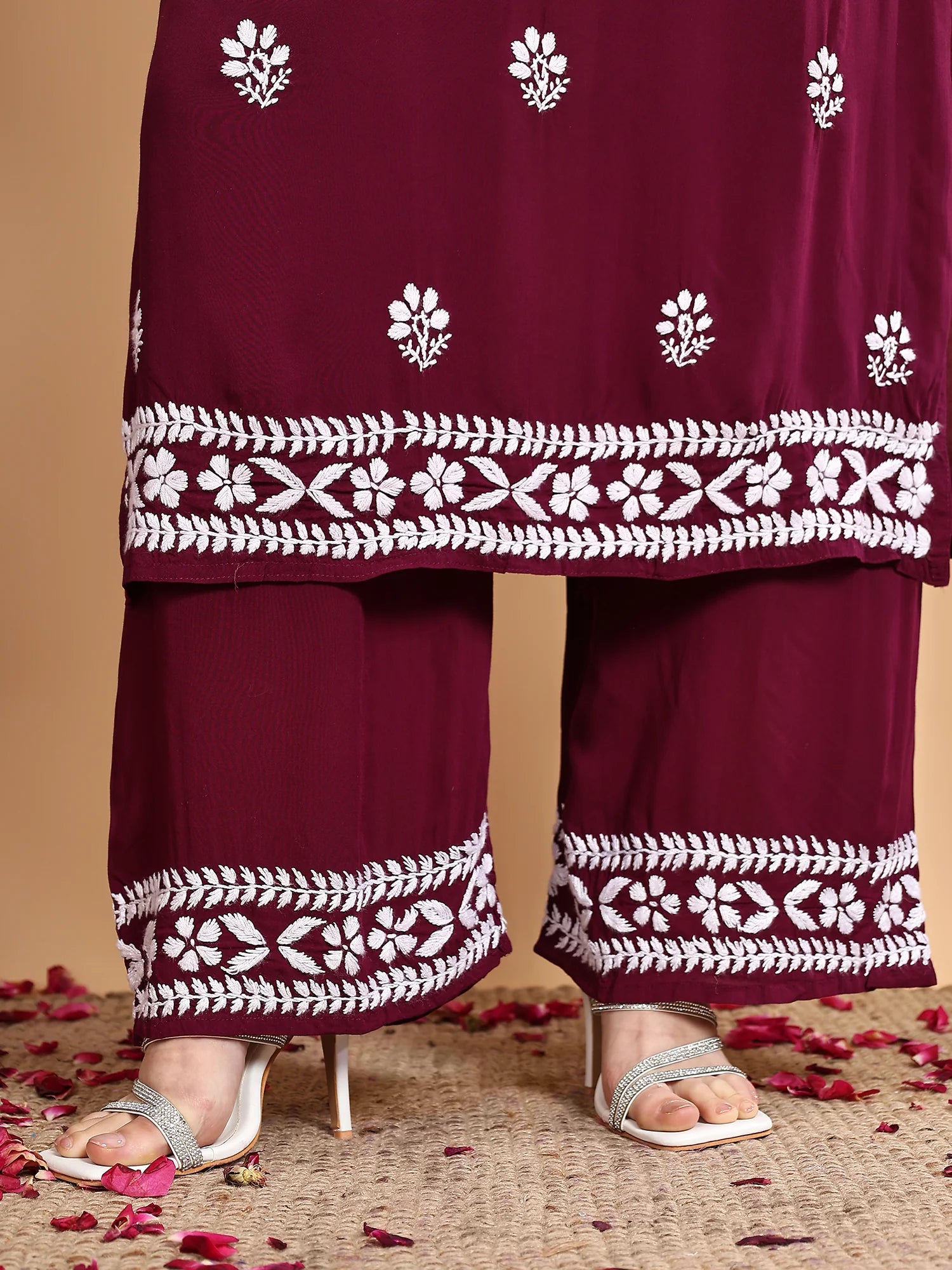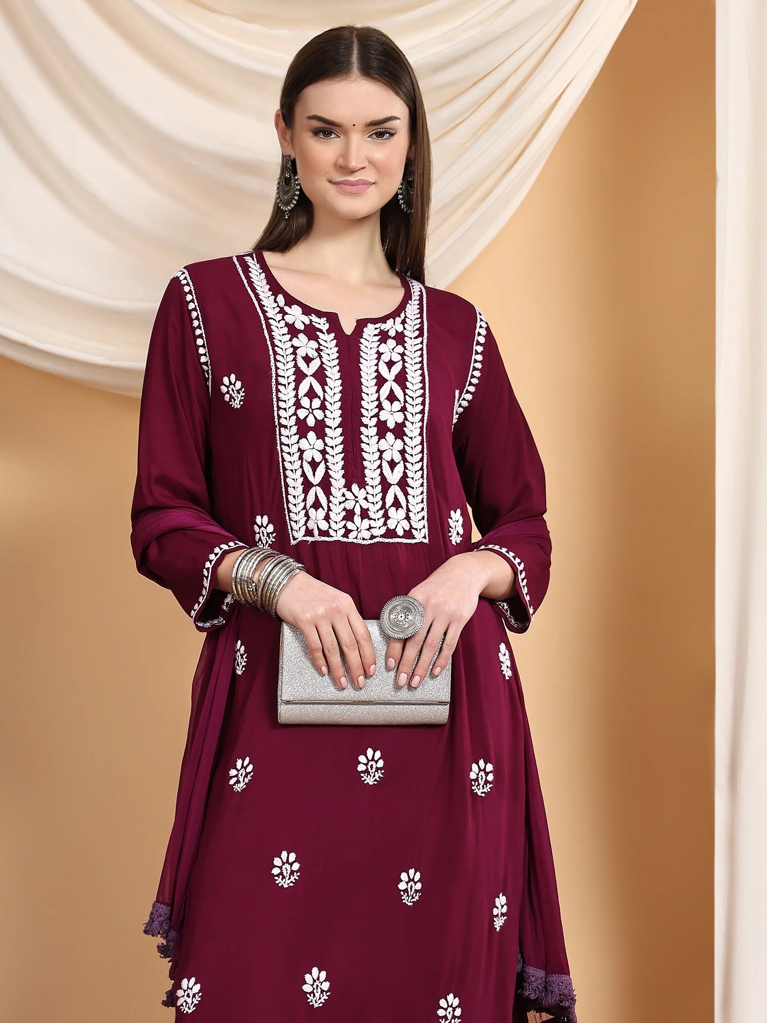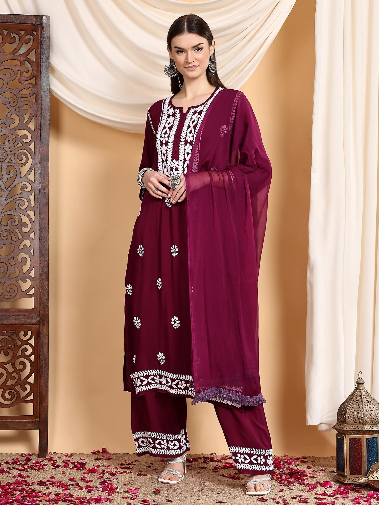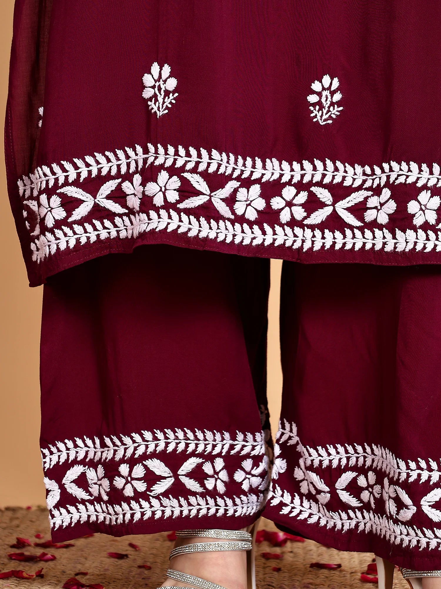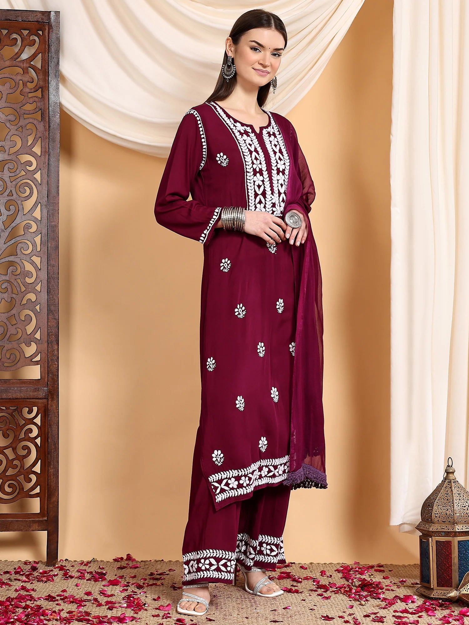 Workmanship: Hand-embroidery Chikankari Work includes Kurta plus palazzo trousers and a duvet.